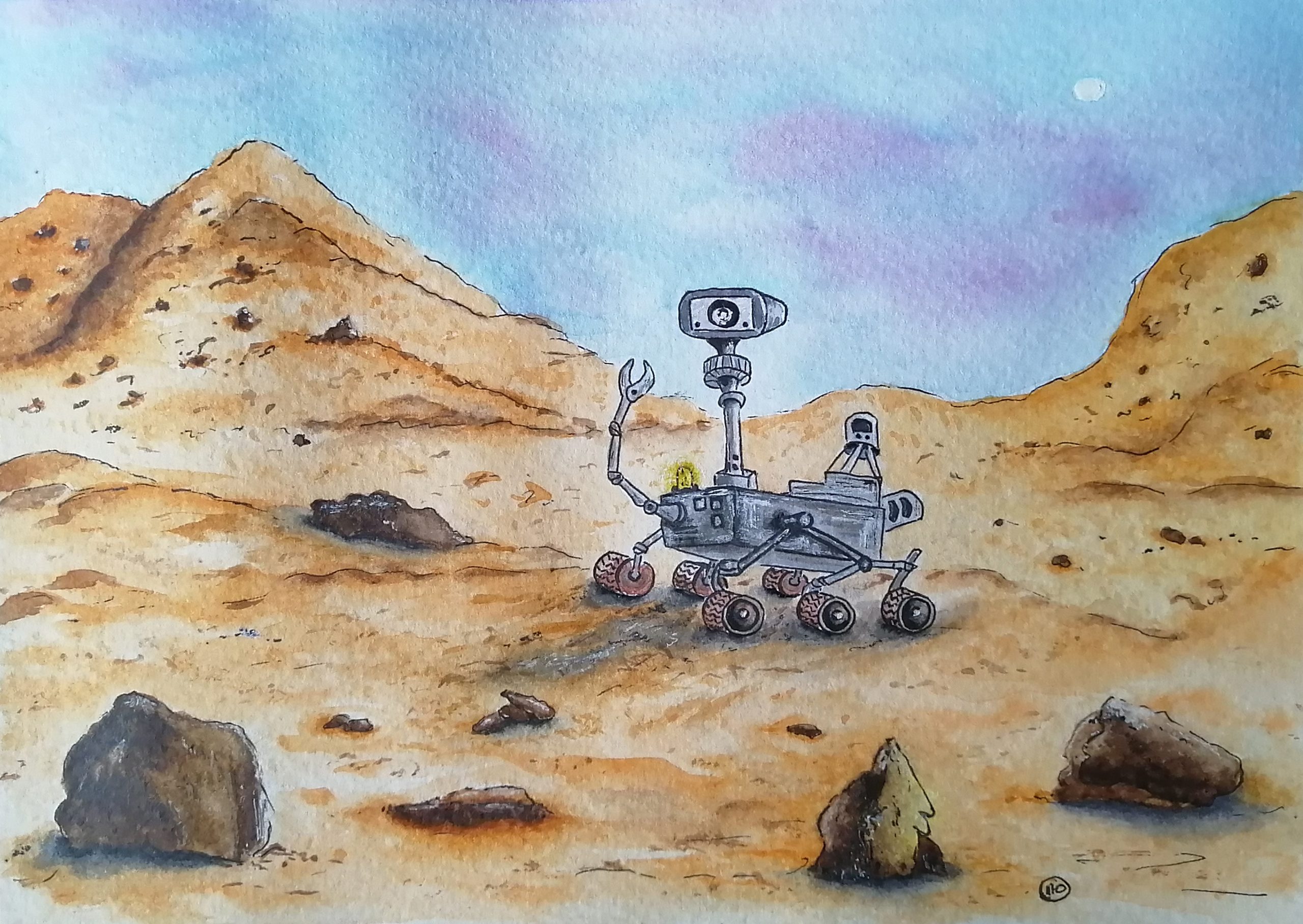 Скажу честно, космос никогда не входил в число моих увлечений и я особо этим не интересовалась. Но, когда я случайно посмотрела 18 февраля приземление ровера Perseverance на Марс, меня это настолько впечатлило, что сразу захотелось запечатлеть этот момент на бумаге. Сколько открытий впереди! Марс ждет нас!