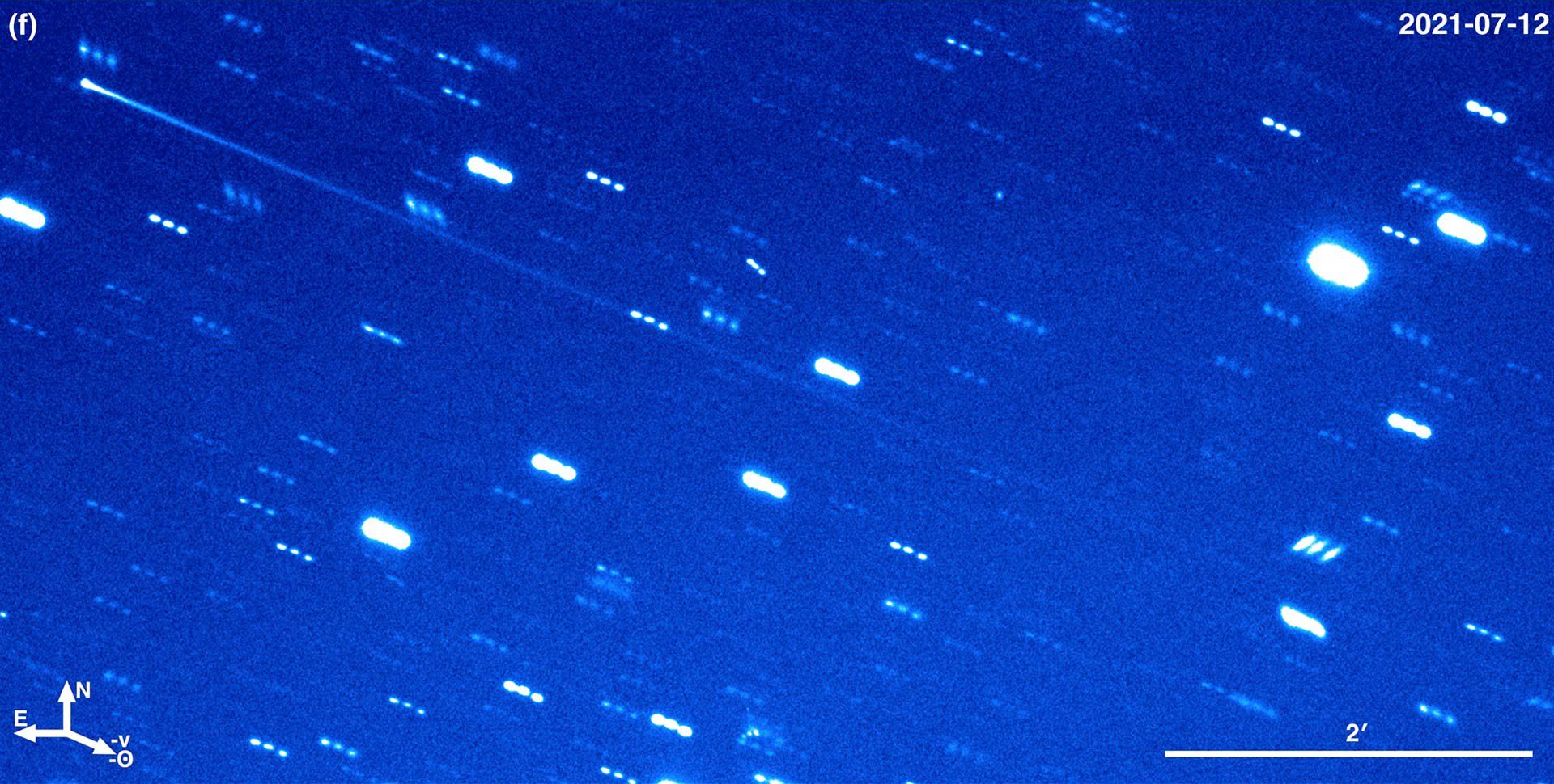 Се удалось определить размеры кометы: диаметр её ядра – 3,2 километра, а длина хвоста в июле 2021-го составляла более 720 тысяч километров, что почти вдвое больше расстояния от Земли до Луны. Его ширина при этом оказалась всего 1400 километров, что довольно мало, учитывая внушительную длину: