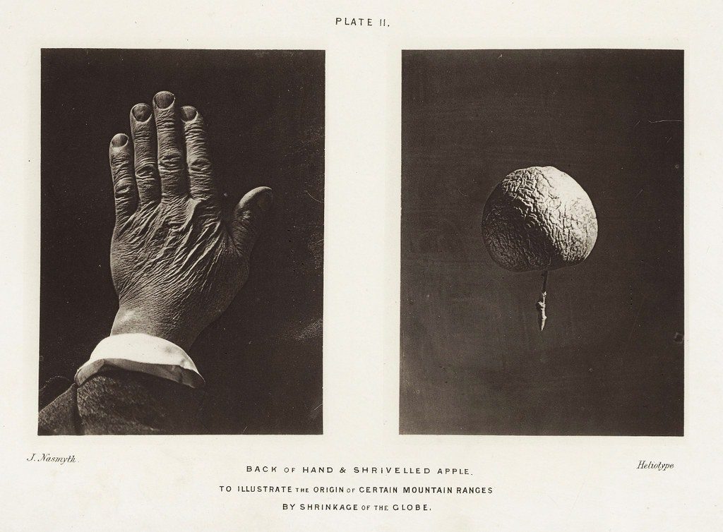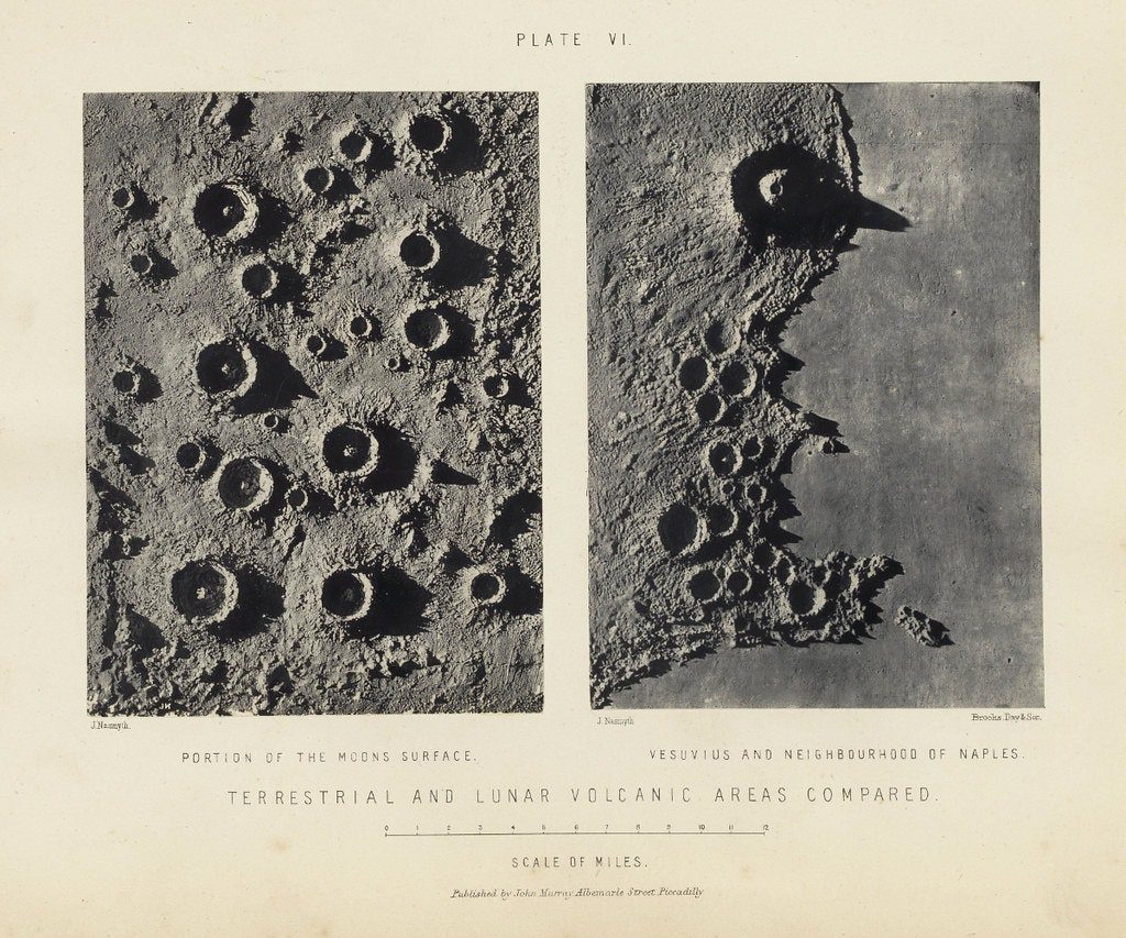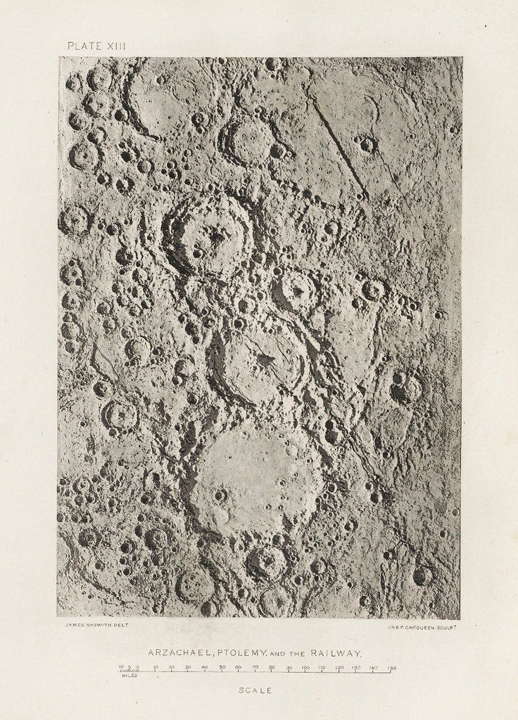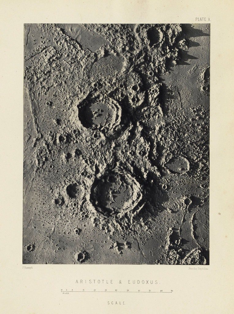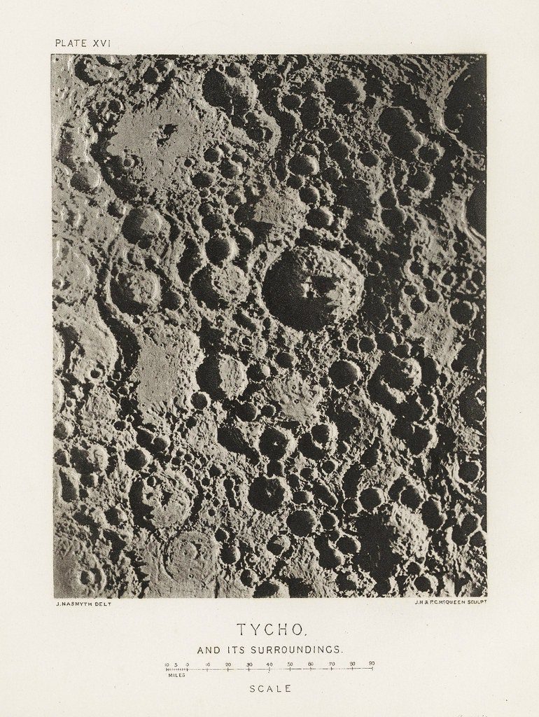 Дивлячись у саморобний телескоп, Джеймс Несміт замалював покриту шрамами, кратерами та горами поверхню Місяця. Прагнучи “точно відтворити місячні ефекти світла і тіні”, він побудував гіпсові моделі на основі малюнків та сфотографував їх на чорному тлі під яскравим сонячним світлом. Оскільки технологія фотографування безпосередньо через телескоп перебувала ще в зародковому стані, етапи малювання та моделювання були необхідні досягнення бажаної деталізації Місяця.