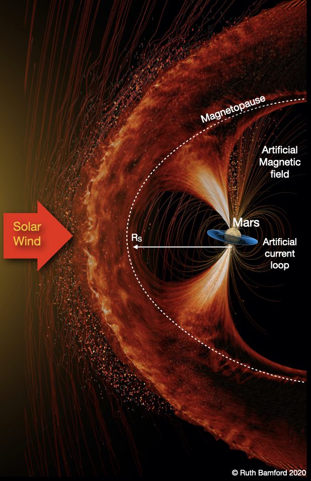 В этой статье группа ученых впервые всесторонне исследует практические и инженерные проблемы, влияющие на возможность создания искусственного магнитного поля, способного охватить весь Марс. Это включает в себя проблемы, которые определяют конструкцию и место расположения генератора магнитного поля и возможные стратегии строительства.