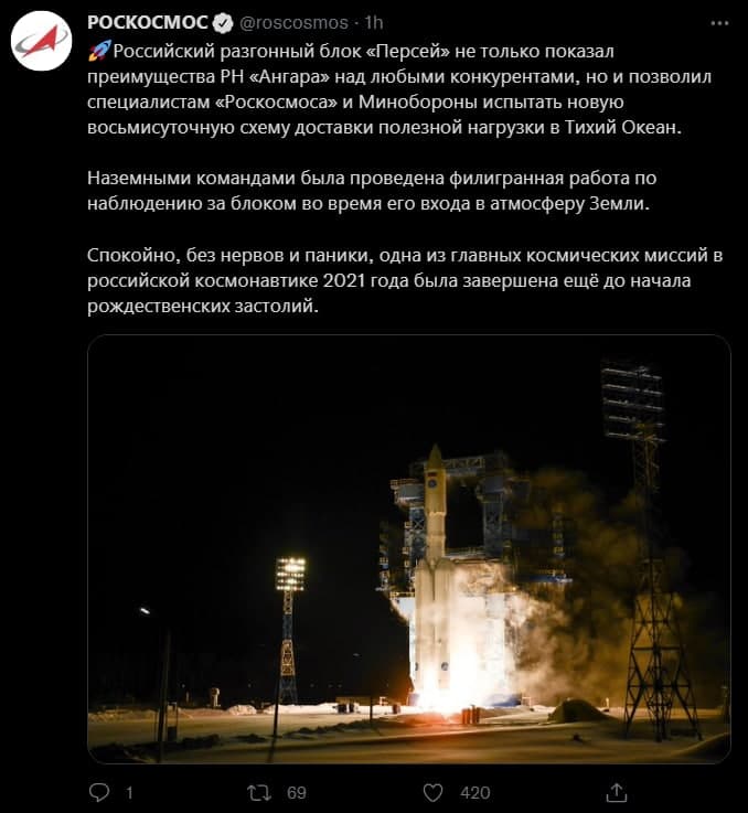 Российский разгонный блок «Персей» вошёл в атмосферу Земли над Тихим Океаном Павло Поцелуєв Січ 06, 2022 Гумор 2124 53 Share Telegram Twitter/X Facebook WhatsApp Copy Link Этот материал опубликован в категории «Юмор». Поэтому рекомендуем и относиться к нему с юмором 😉