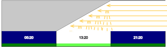 Световой цикл в 3-х часовых поясах по скошенным потолкам: