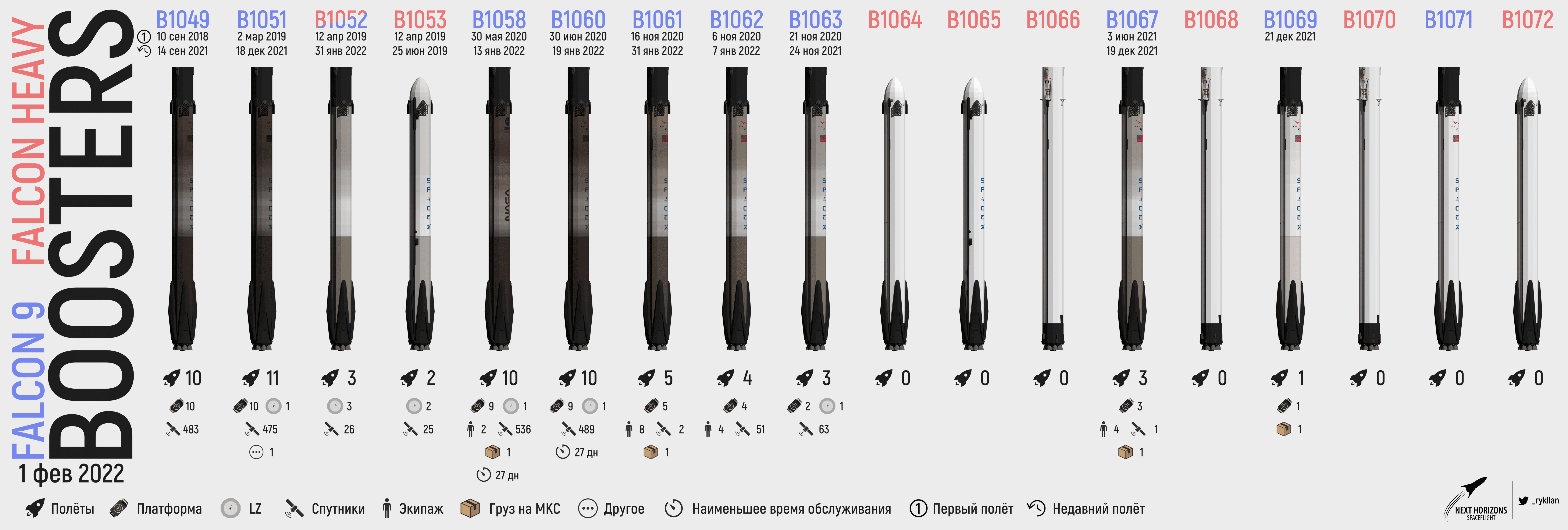Активные бустеры Falcon 9 и Falcon Heavy на 1 февраля 2022 rykllan Лют 01, 2022 Офтоп 516 30 1 Share Telegram Twitter/X Facebook WhatsApp Copy Link