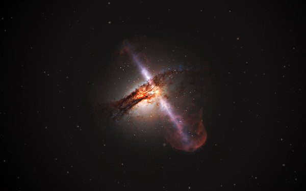 Релятивистские джеты вырываются из сверхмассивной чёрной дыры в сердце галактики Центавр А. Изображение: ESA | Hubble, L. Calçada (ESO)