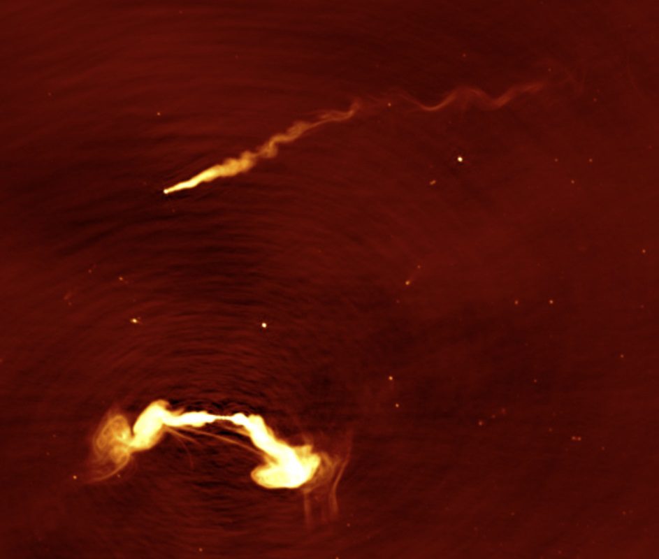 Мне посчастливилось за свою карьеру работать на дюжине различных радиотелескопов, но с самого начала было ясно, что MeerKAT – это кое-что особенное. Я привыкла к работе с исходниками, где нужные мне объекты выглядят как безликие пятна, но детализация и широкий угол обзора изображений MeerKAT, несомненно, делают их самыми красивыми из тех, что я видела — большой участок неба с десятками крошечных галактик, плавающих в космосе. Это похоже на данные, получаемые прибором Deep Field космического телескопа «Хаббл». Но вместо видимого звёздного света, который наблюдает «Хаббл», галактики на радиоизображениях MeerKAT подсвечиваются взаимодействующими с рассеянным газом и пылью сверхмассивными чёрными дырами в их центре. Эти процессы представляют собой устойчивые низкоэнергетические события, которые подпитывают большинство чёрных дыр во Вселенной.