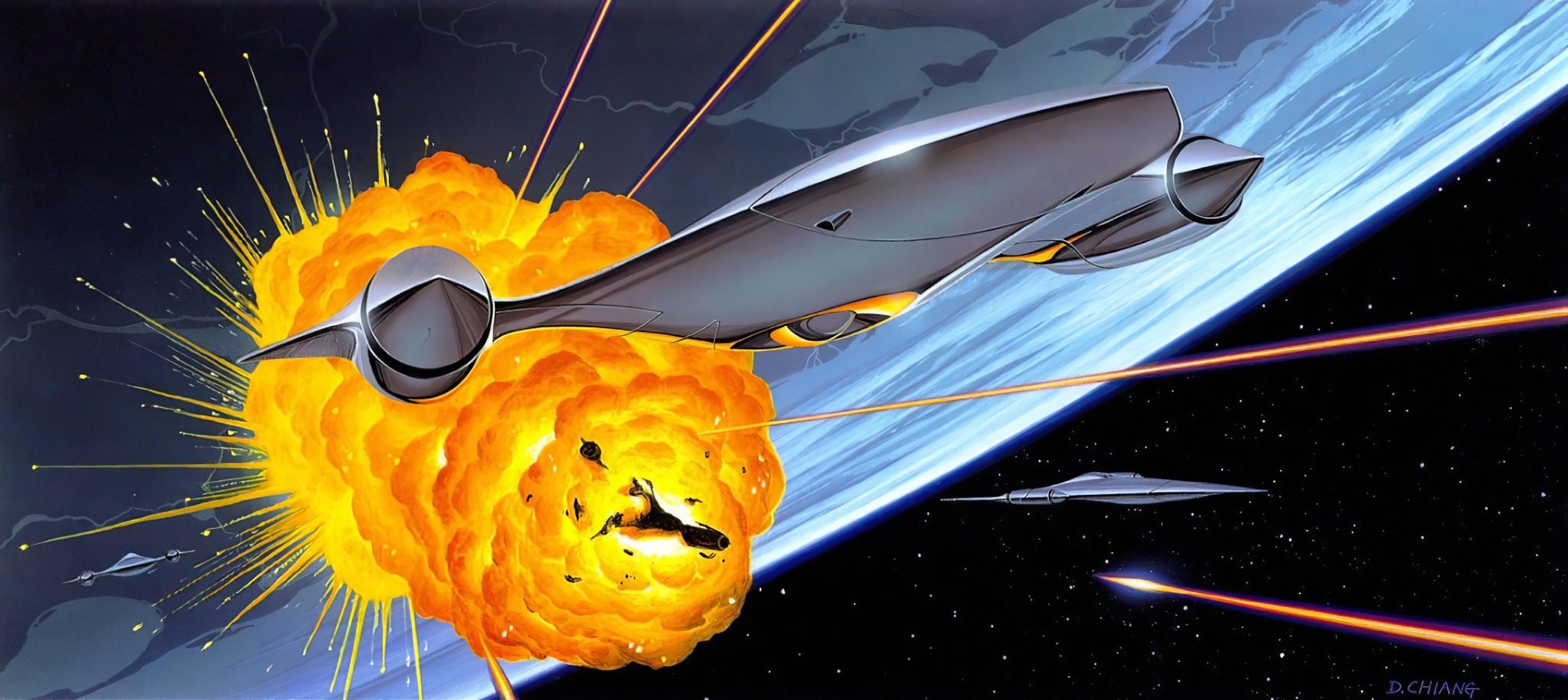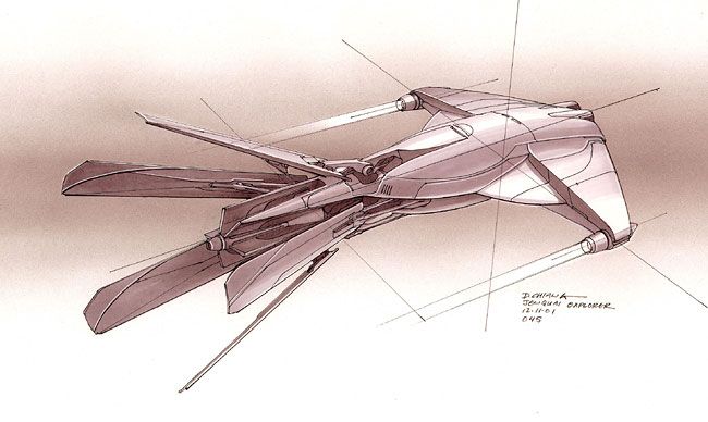 Кроме полноцветных детализированных иллюстраций, Чанг большой мастер скетча, который отлично передаёт идею и конструкцию придуманного корабля, робота или интерьера. Это скорее техническая иллюстрация. Кстати, очень по стилю похожа на скетчи Даниэля Саймона (статья о его работах), или скетчи Саймона похожи на скетчи Дуга Чанга. Думаю, тут ни кто ни у кого не подсматривал, точнее подсматривали все у всех, в 90-х такой стиль был популярен.
