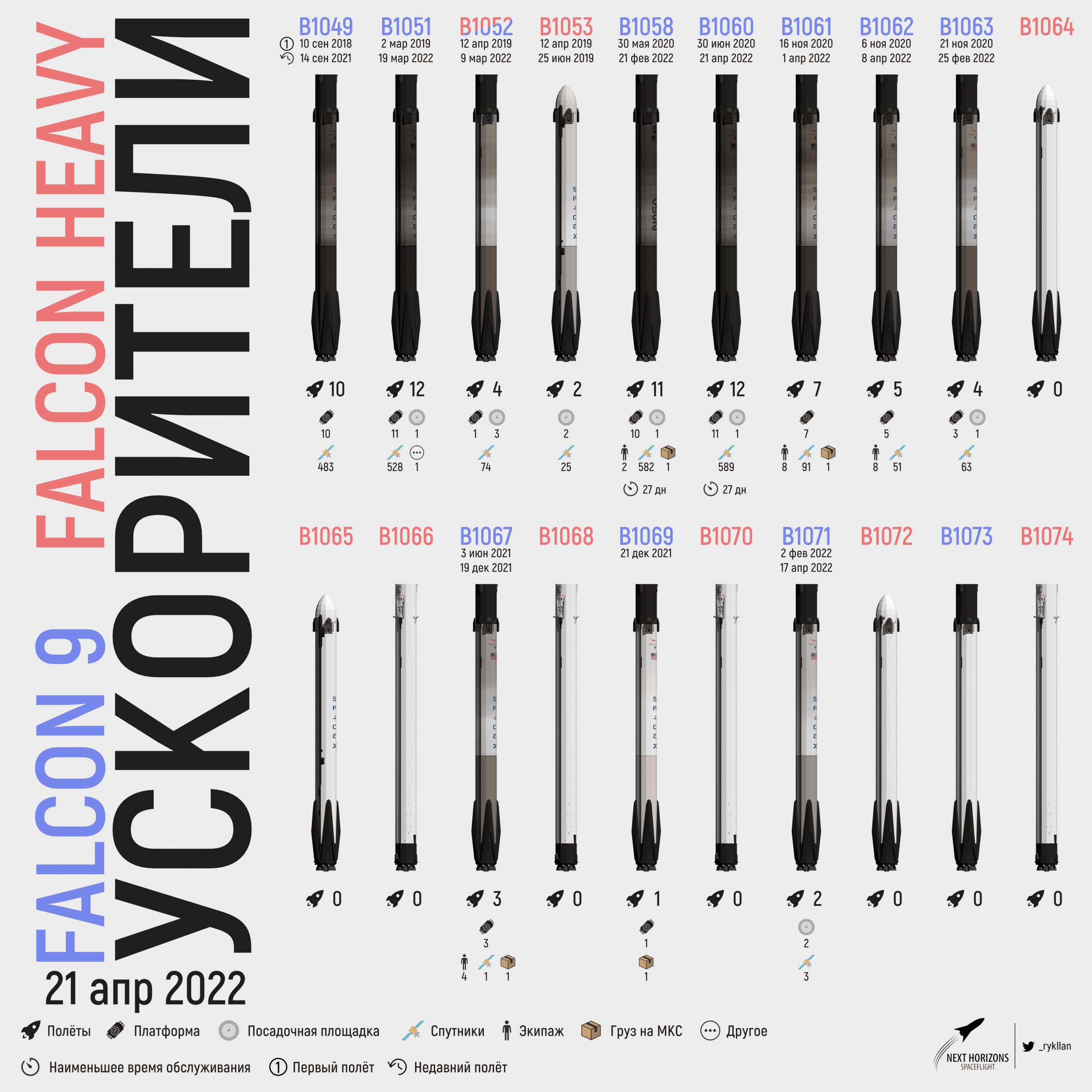 1073, всё больше данных о том, что это бустер от Ф9, которую запустят в ротацию в мае. А ещё, что этот бустер запасной для НАСА. Так сказать, для своих целей держат, ибо 1069 подвёл, и произошла замена.