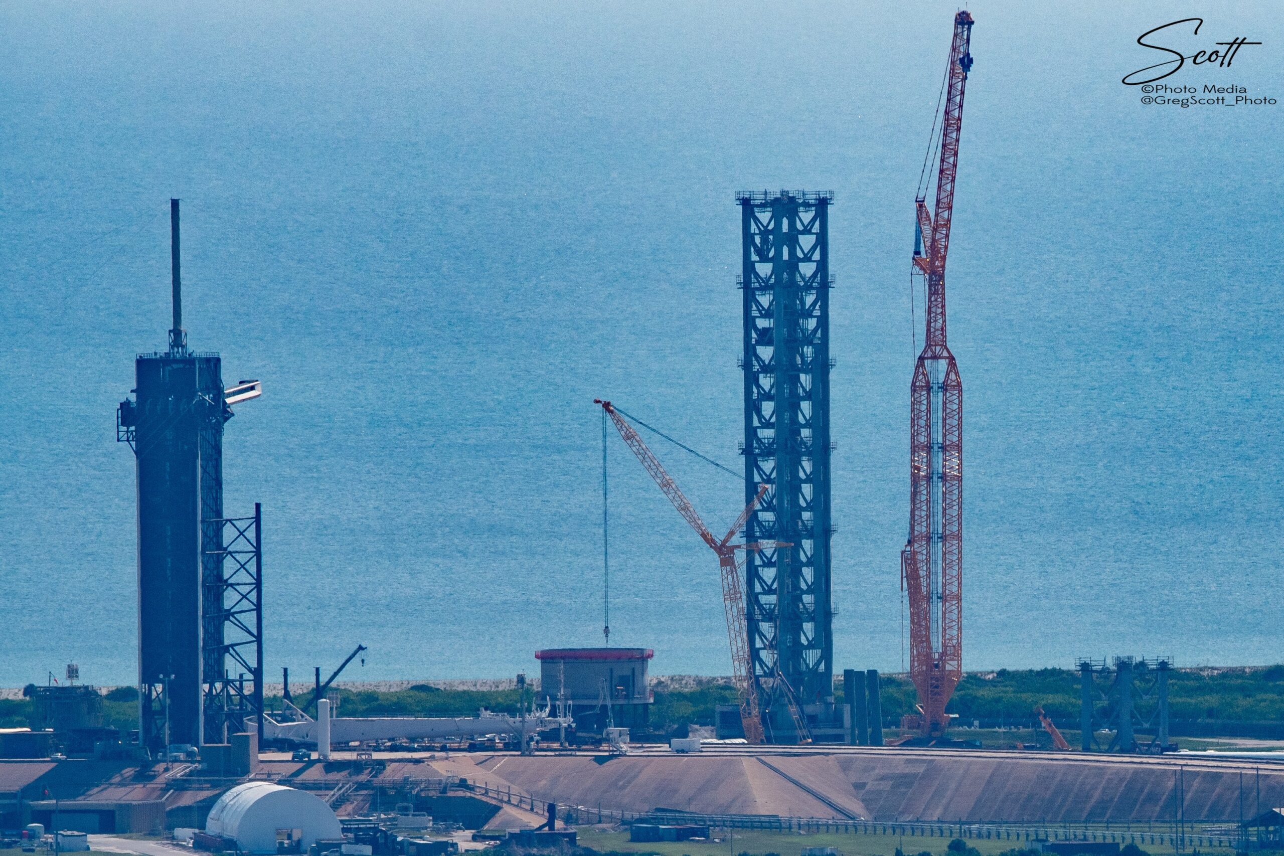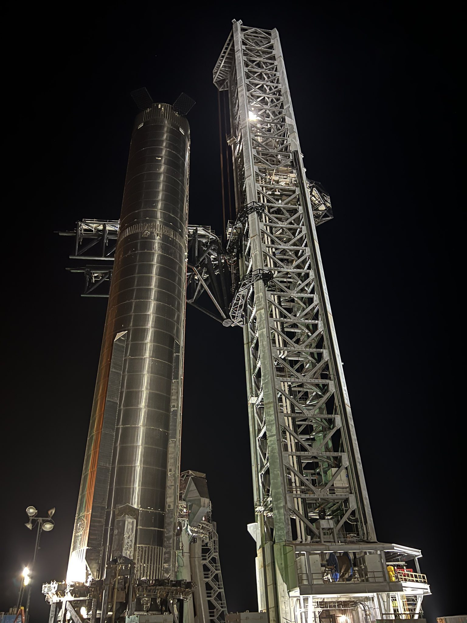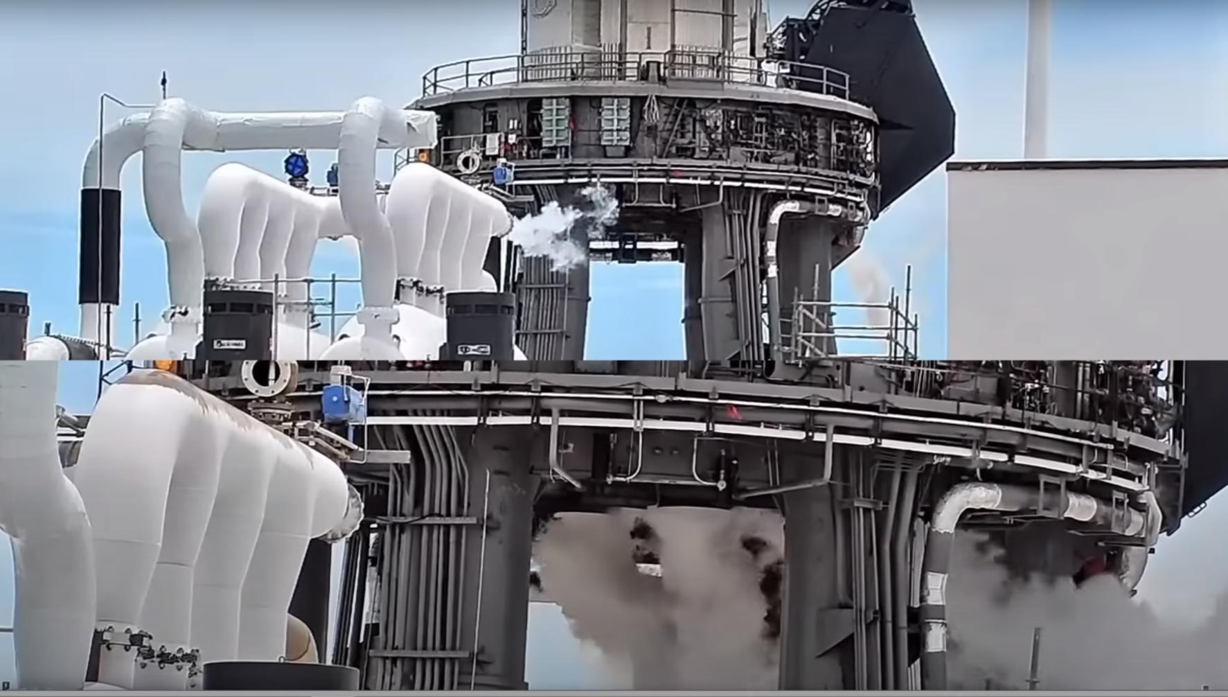 Первым делом после установки провели продувку самого стартового стола. Эта операция проводилась впервые (как и много чего еще в этом месяце), и, вероятно, была призвана проверить систему внешнего наддува наружного кольца двигателей. Незадолго до этого провели другую интересную проверку – на суборбитальном стартовом столе Б, где был установлен Ship 24, проверили систему подачи воды. Очевидно, она очень пригодится при запуске всех 6 его двигателей.