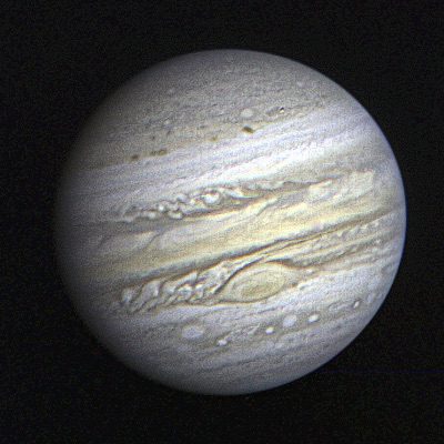 При спостереженні у невеликий телескоп із поверхні Землі, в атмосфері планети можна побачити чергування яскраво-білих зон і темно-коричневих поясів. Це видимі прояви струменевих потоків, що рухаються зі сходу на захід і змінюють напрямок від екватора до полюсів, створюючи овальні вихори різних розмірів.