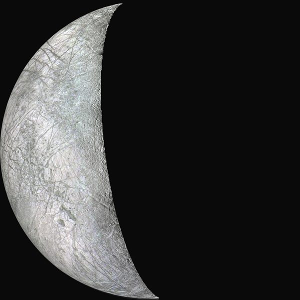 Європа, наступний супутник Юпітера, не дуже відрізняється від своїх «братів і сестер». Зображення з низькою роздільною здатністю, зроблені «Вояджером-1», показали яскраву поверхню замерзлої води без видимих кратерів, а також сліди від темних ліній. Близнюк «Вояджер-2» підлетів набагато ближче, і на його знімках було виявлено замерзлі рівнини, що перетинаються темними смугами. Це надавало супутнику вигляд «тріснутого яйця».