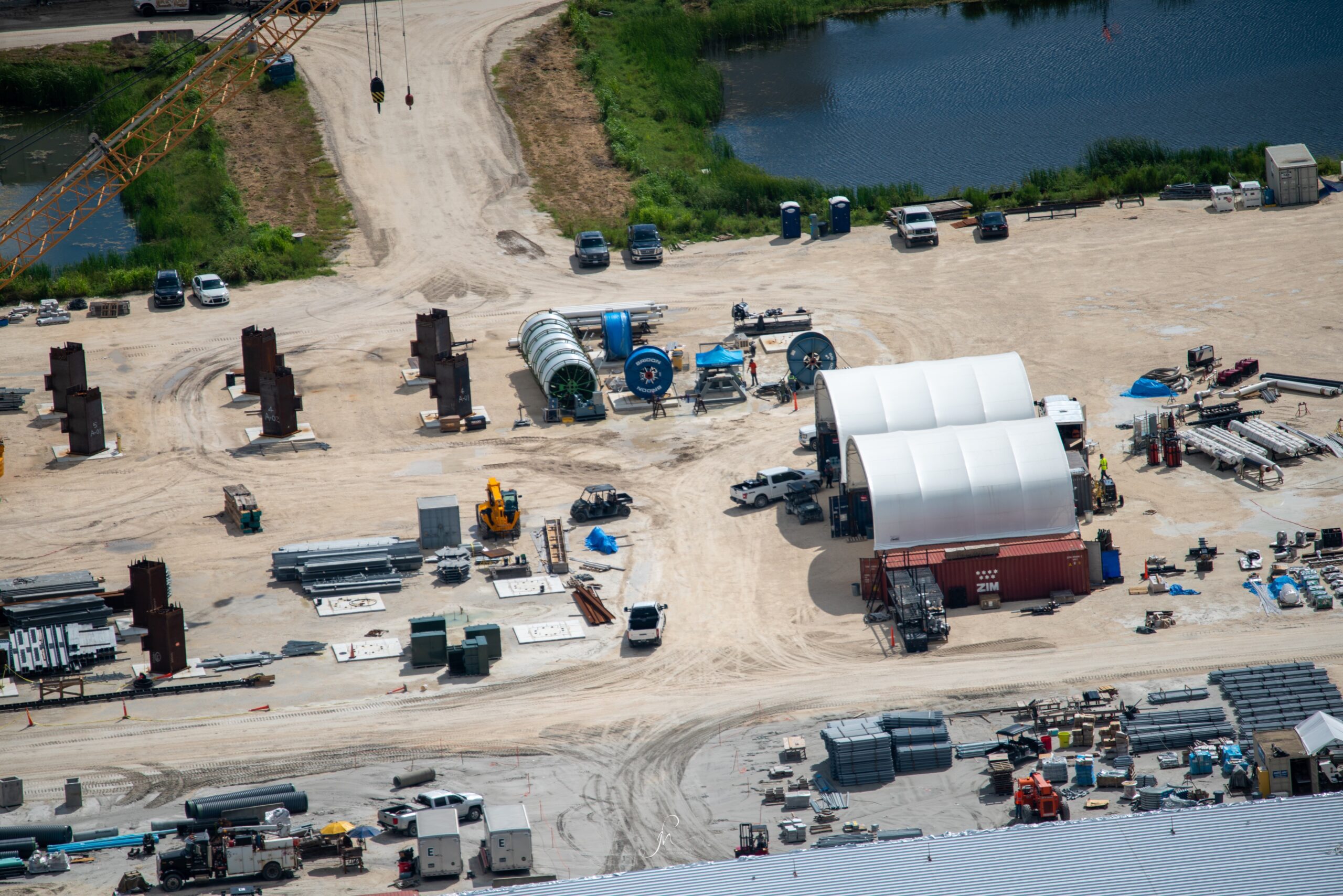 Во Флориде продолжается строительство фабрики. Теперь полностью готов каркас 2-й очереди и кладут крышу уже не нее. А по соседству ведутся фундаментные работы для следующей, 3-й очереди местной Starfactory.