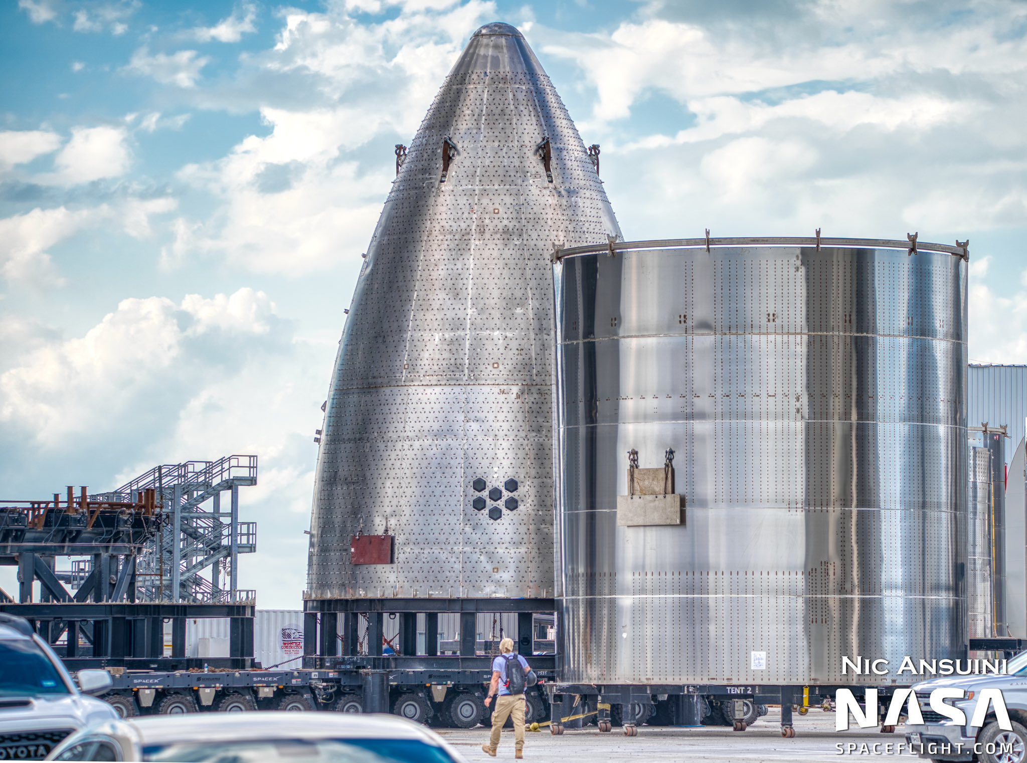 А вот с Ship 26 ситуация продолжает оставаться туманной. Еще в августе с него начали снимать плитку. Теперь он полностью “голый”. Более того, на новой грузовой секции нет и диспенсера. Итак, что же это? Одноразовый корабль. Массогабаритный макет? Или прототип заправщика? Думаю, в скором времени узнаем.
