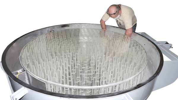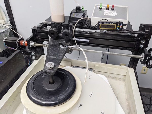 На цьому зображенні заготовка дзеркала до початку шліфування. Перед увімкненням верстата на її верхню частину буде додано шар абразиву та води. Джерело: Waite Research