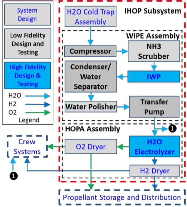 Компоненти CT, IWP і HOPA мають бути об’єднані в обладнання, щоб реалізувати оптимізоване рішення для очищення води та виробництва палива для поверхні Місяця.