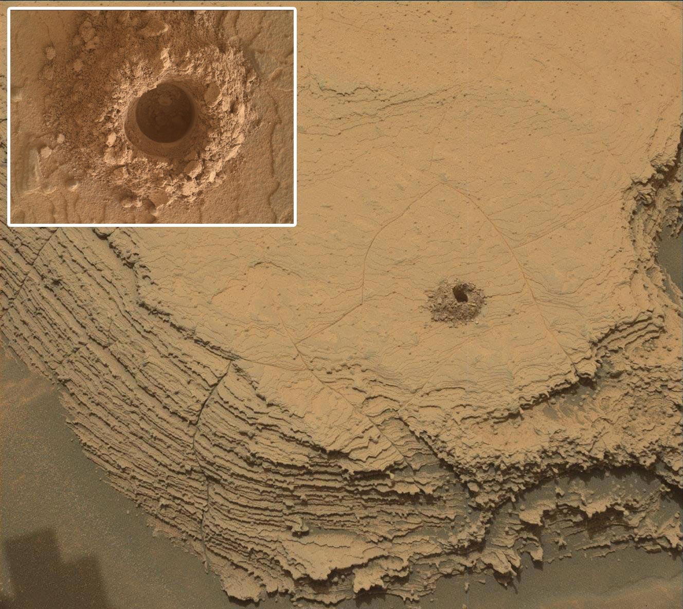 Зображення 36-ї свердловини на горі Шарпа у скелі «Канайма», зроблене Curiosity з використанням камери Mastcam. Джерело: NASA/JPL-Caltech/MSSS