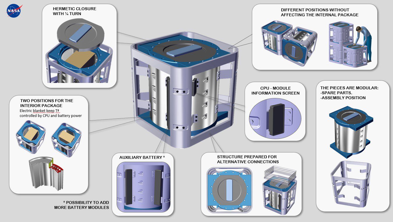 NASA шукає інноваційні концепції в сфері доставки матеріально-технічного забезпечення в контейнерах під тиском (їжа, запаси, вода, предмети ремонту, інструменти, тощо) на поверхню Місяця. Предмети, що розміщується в контейнерах, мають забезпечуватися енергоресурсами від посадкового модуля до моменту їх вилучення, що може тривати до 120 днів після посадки на поверхню Місяця.