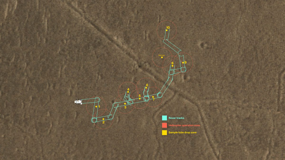 Гарантією того, що гелікоптер отримає зразок, не пошкодивши інші пробірки та не зіткнувшись із такими перешкодами, як камені, є те, що кожне місце матиме “зону дії” близько 5,5 метрів у діаметрі. Тому зразки будуть розташовані зигзагом на відстані 5-15 метрів один від одного.