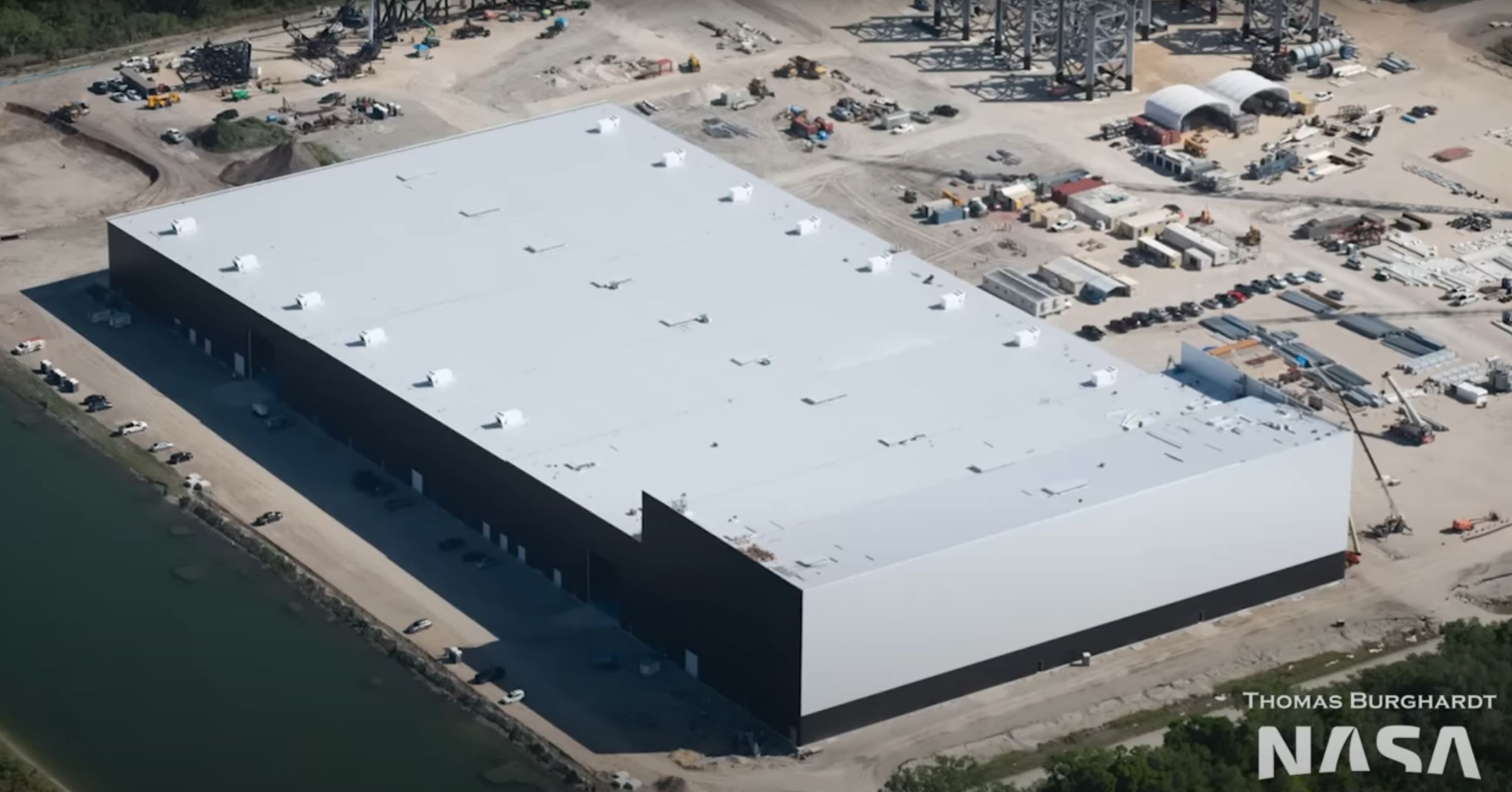 Во Флориде наконец-то завершили строительство основного здания Starfactory – фабрики по производству комплектующих для Starship. Здание полностью построено, и, судя по всему, сейчас в нем ведется работа по наладке оборудования, заметна установка системы кондиционирования и т.д. Так что вскоре собирать кольца и обтекатели там они смогут. А вот собирать корабли – нет, ведь уже полгода как строительство флоридского Megabay находится на паузе, хотя, казалось бы, все для этого готово – и фундамент, и конструкции разложены, и кран стоит, ждет.