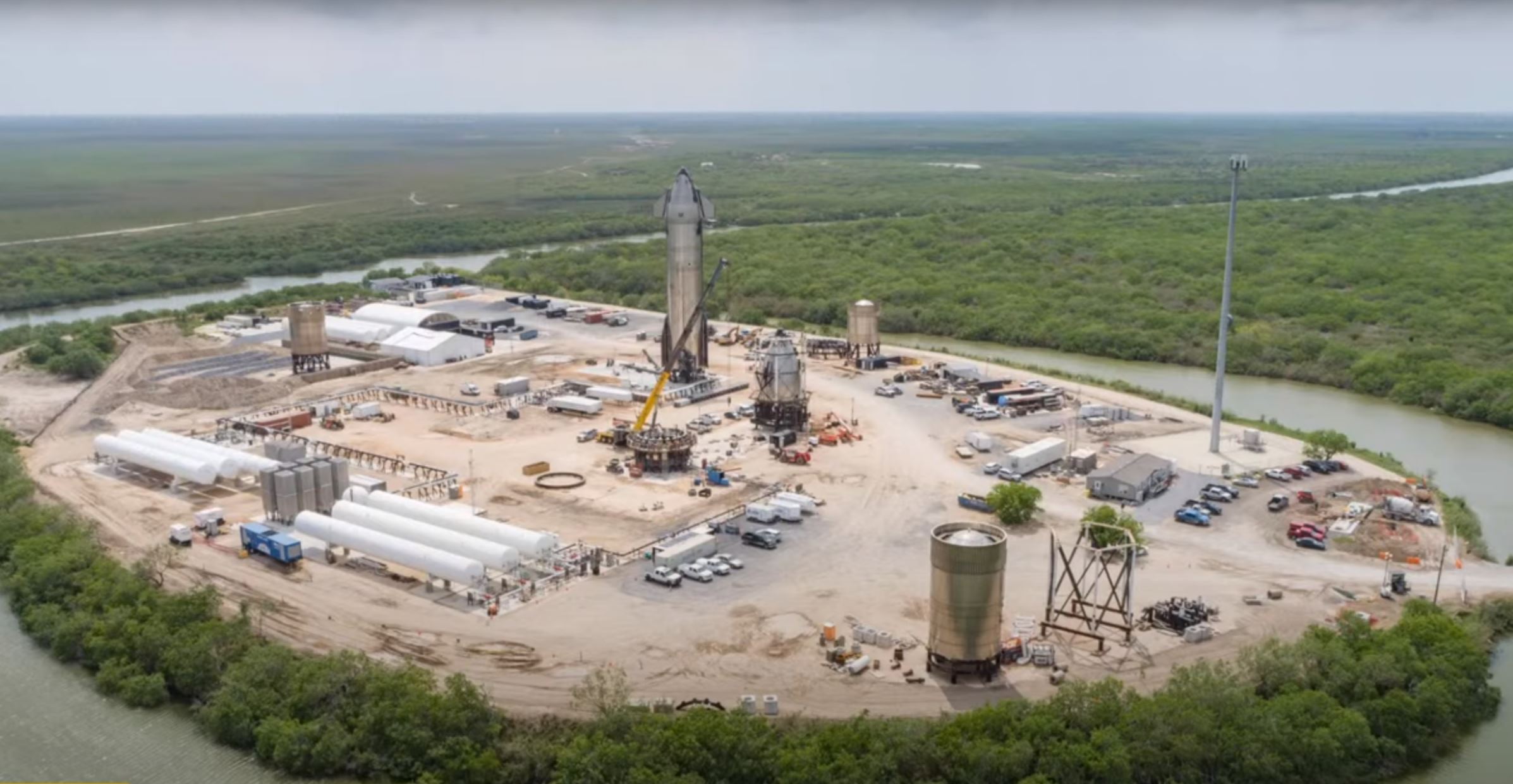 Вообще трудно сказать, управится ли SpaceX с монтажом за оставшиеся пару недель, возможно, для первого запуска разрешат ограничится каким-то промежуточным решением. Например, перед криофермой, помимо защитного вала, установили еще и несколько брандспойтов, призванных создать водяную завесу перед баками с горючим. В общем, будем и дальше наблюдать за ситуацией.