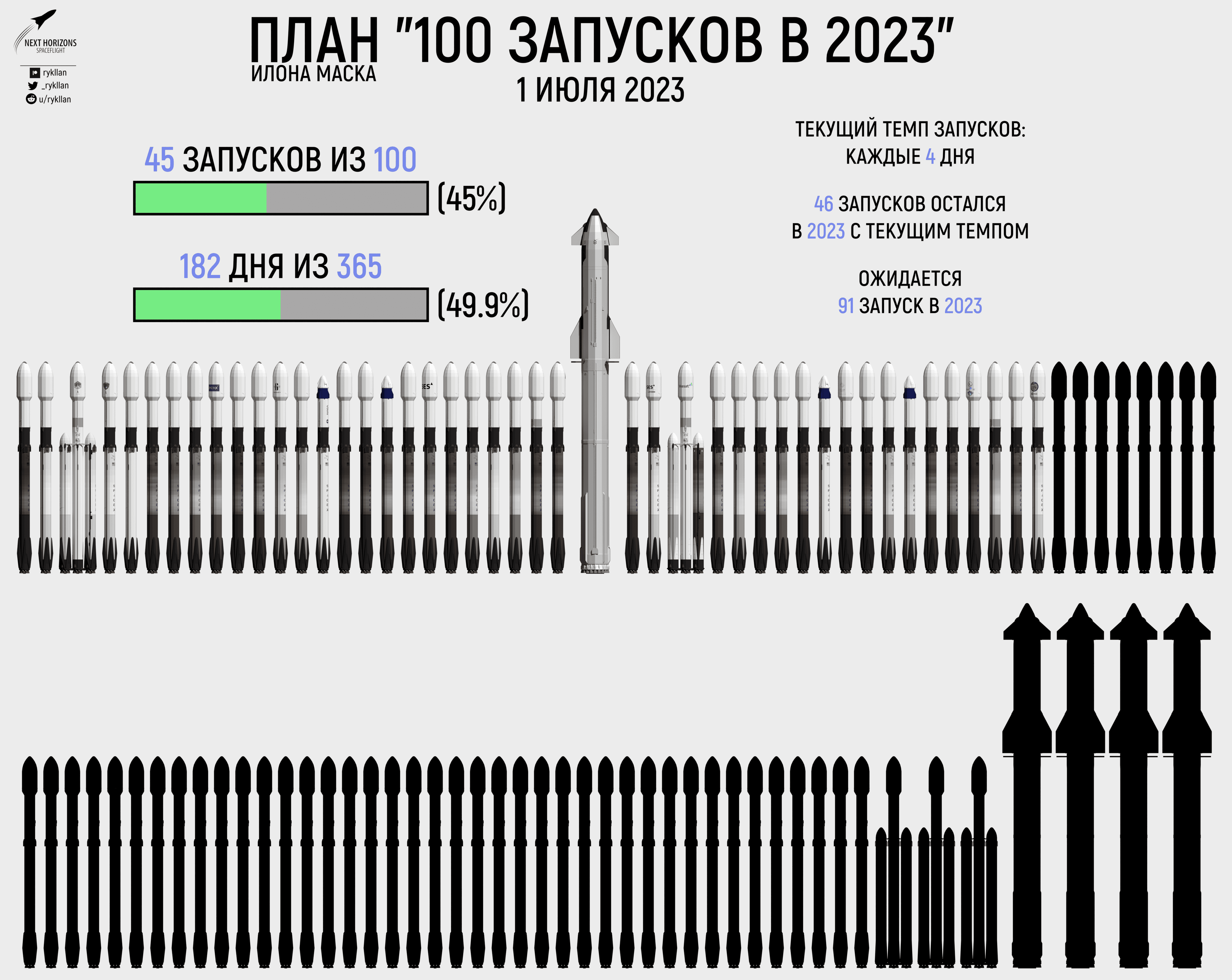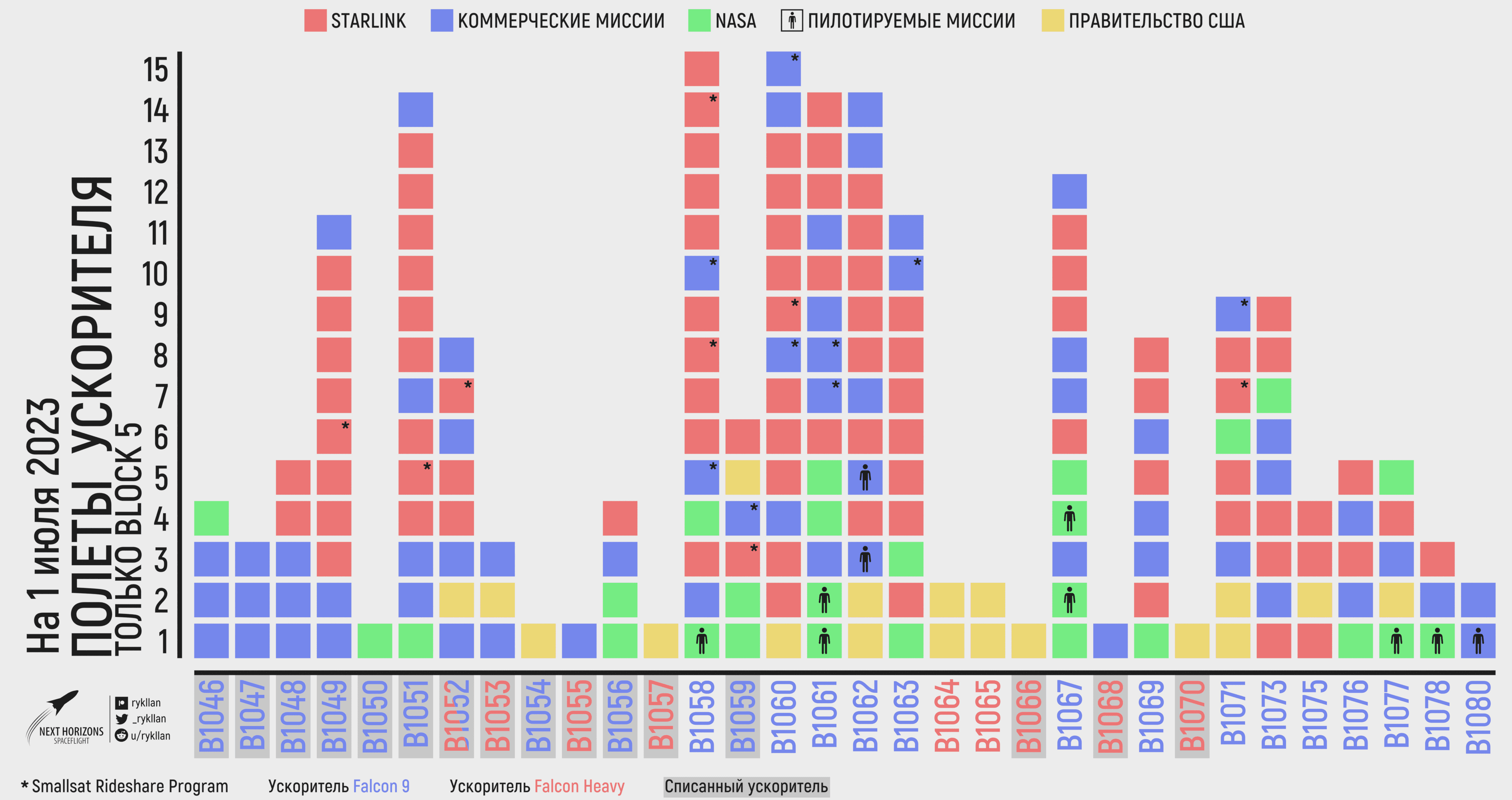Послепусковая инфографика Falcon 9 на 1 июля 2023 rykllan Лип 01, 2023 SpaceXІнфографіка 515 25 Share Telegram Twitter/X Facebook WhatsApp Copy Link Активные ускорители Falcon 9 и Falcon Heavy Статистика полётов ускорителей Falcon 9 и Falcon Heavy План «100 запусков в 2023»