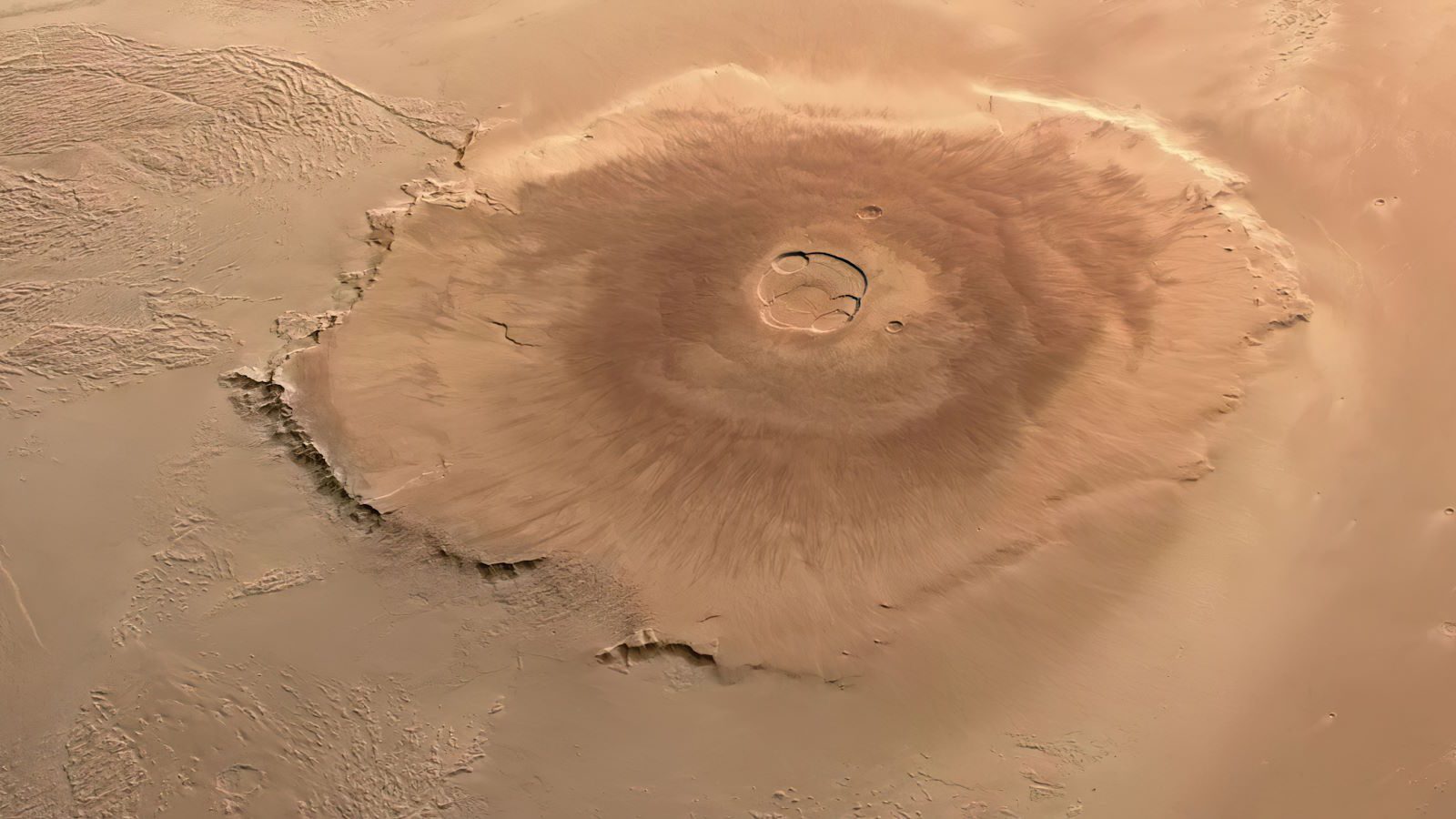 Гора Олімп – велетенський згаслий вулкан. Зображення: ESA | DLR | FU Berlin | Mars Express | Andrea Luck