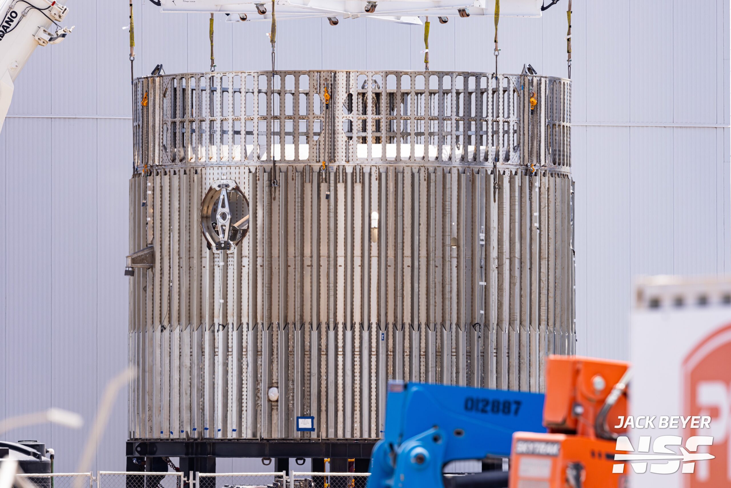 Однако испытания не ограничивались предполетной подготовкой Booster 9 и орбитальной стартовой инфраструктуры. В частности, были произведены криогенные испытания Booster 10. Отметим, что первичные испытания теперь проводятся не на стартовой площадке, а на полигоне Месси, находящимся в стороне от дороги. Это позволяет лишний раз не перекрывать шоссе и общественный пляж, что упрощает и ускоряет тестирование. Кстати, Booster 10 – первый ускоритель, испытания которого проводились на новой площадке – раньше там могли испытывать только тестовые баки и корабли. В настоящее время на нем продолжает строится дополнительная инфраструктура, которая, вероятно, позволит проводить и ограниченные огневые испытания – по крайней мере, для кораблей.