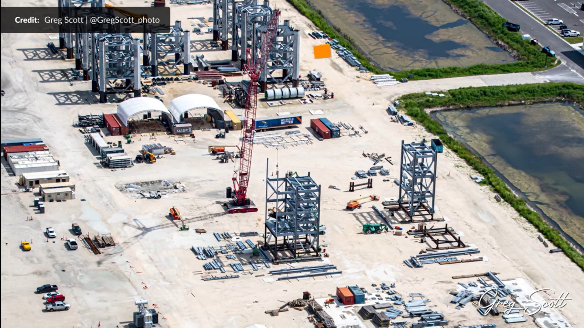 Так, к моменту испытаний Booster 9 был завершен 5-й уровень Mega Bay 2. Теперь доделывают стены на 3-м уровне, и затем займутся 4 и 5-м. Также предстоят работы над монтажом кранов и крыши. В общем, работа продвигается быстро.