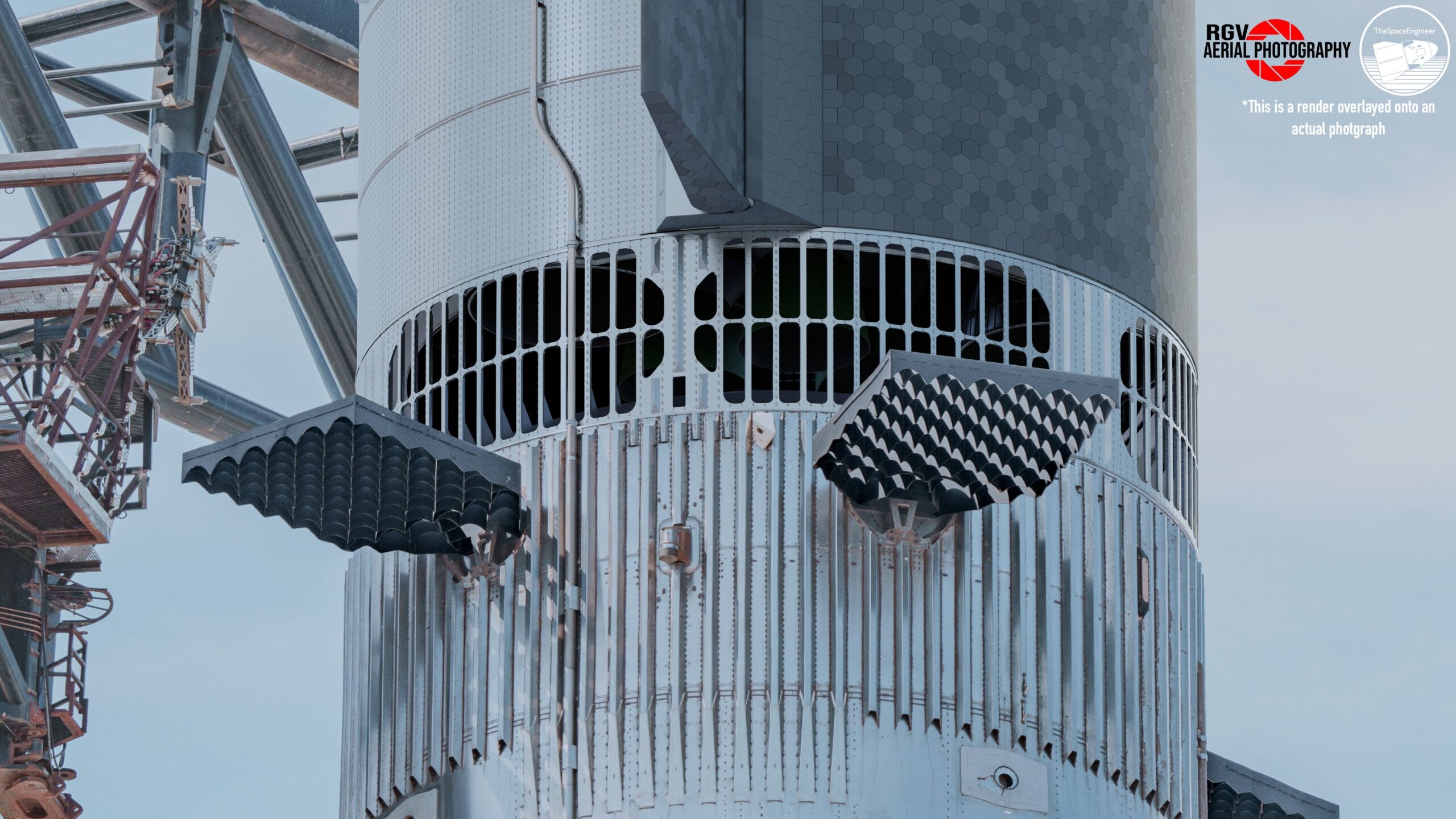 Прежде всего, лицензия FAA на орбитальные запуски приостановлена. Во-вторых, полной сборки Booster 9 + Ship 25 мы еще не видели, а ведь на сей раз конфигурация будет отличаться – состыковать надо не просто бустер с кораблем, но еще и втиснуть между ними кольцо для выхлопа газов, как показано на фото с рендером выше.