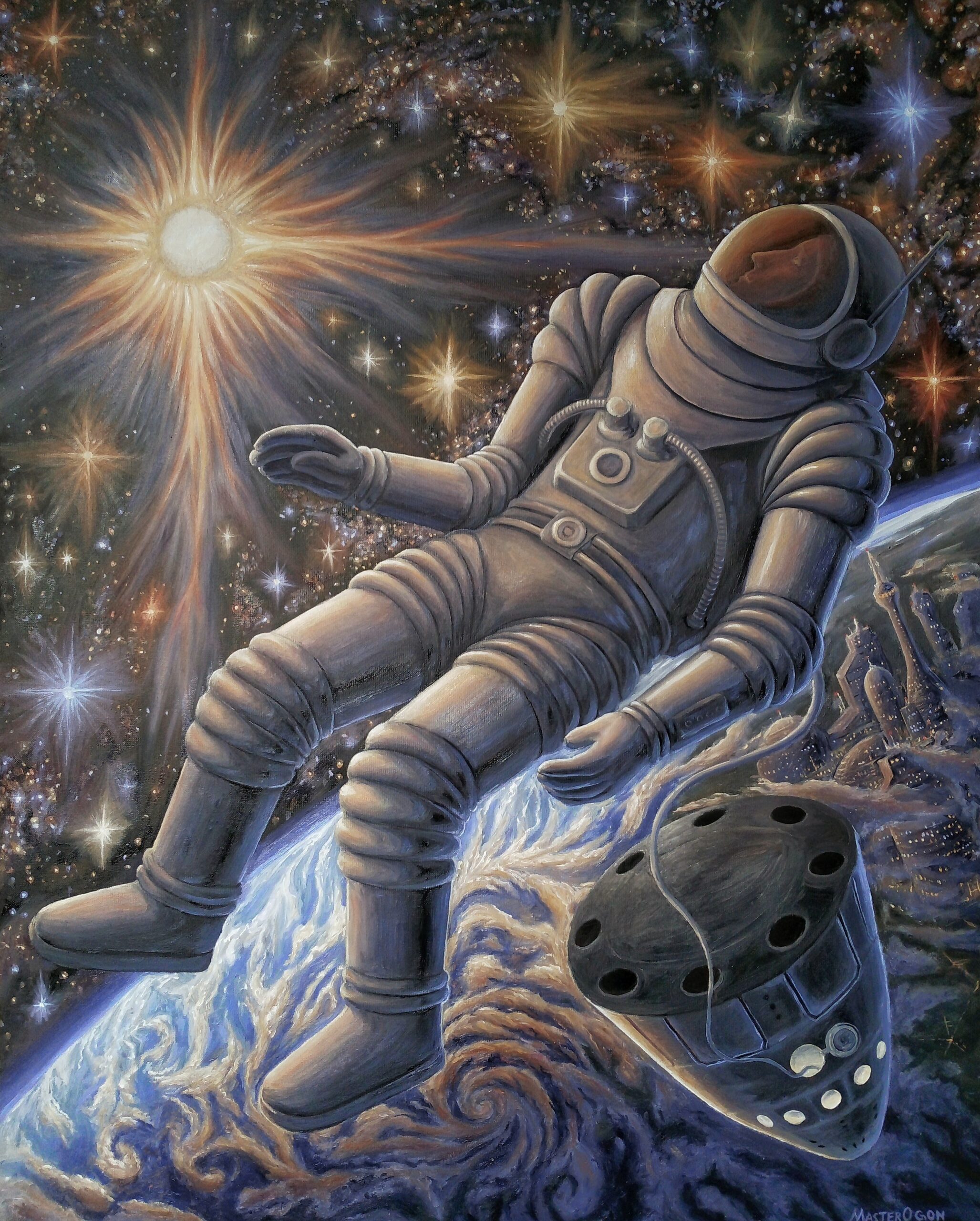 Ще трохи моїх нових картин. Астронавт, люди ракети, еволюція. Олія на полотні.