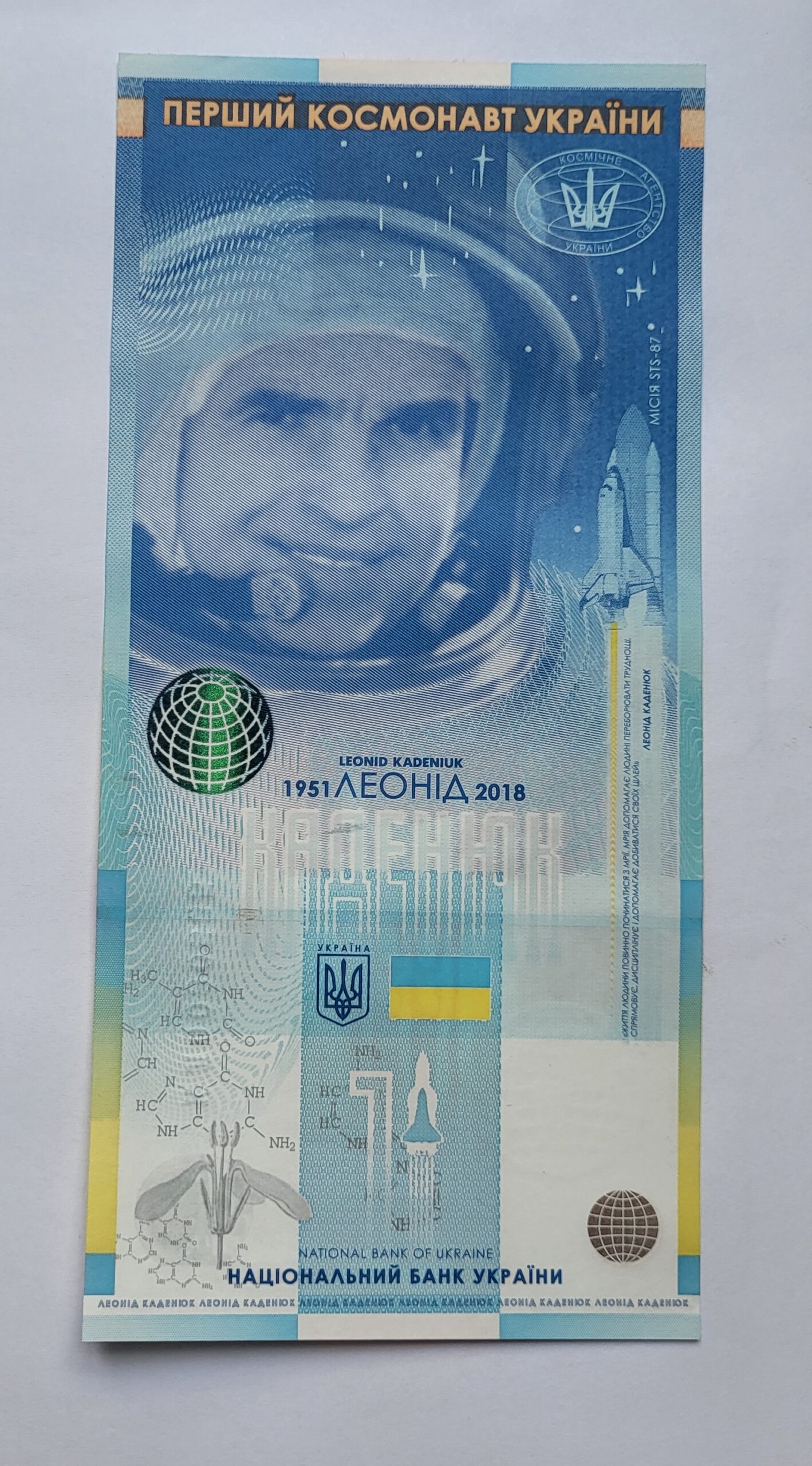 По-перше, це — колекційна гривня від Національного Банку України з першим українським космонавтом, Леонідом Каденюком. Її конкретно для цього збору надав один з наших глядачів, Юрій.