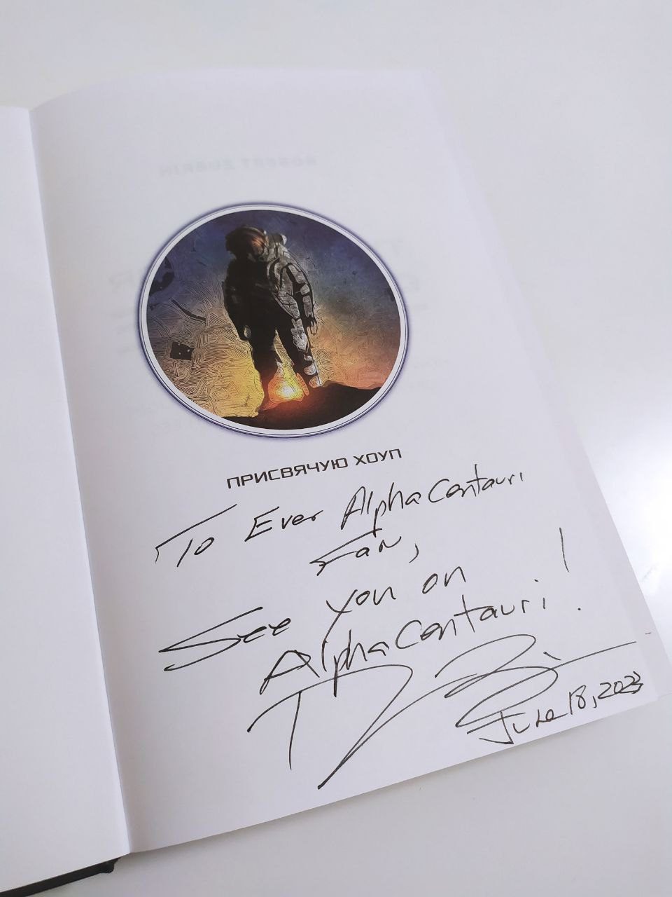 По-друге — книга Роберта Зубріна “Жага космосу” з підписом автора для спільноти Альфа Центавра, її надав наш постійний читач та глядач.