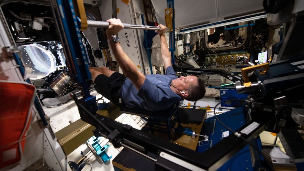 Хоча вага на орбіті не має великого значення (майже відсутність гравітації означає, що все не прикріплене до стін може вільно плавати приміщеннями МКС, так само як і людські тіла), підтримання нормальної ваги тіла на орбіті є непростим завданням. Хоча NASA забезпечує своїх астронавтів різноманітною поживною їжею, включаючи свіжу зелень, вирощену прямо на борту космічної станції, знаходження поза звичного земного тяжіння істотно впливає на організм людини.