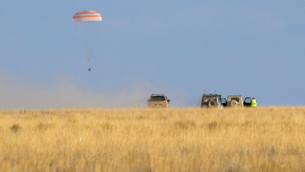 Френк Рубіо, з широкою посмішкою на обличчі, був перенесений з космічного корабля «Союз МС-23» після успішного повернення на Землю у хмарі пилу неподалік міста Жезказган у казахстанському степу. Перебування протягом тривалого часу в умовах низької гравітації на МКС позначилося на його м’язах, і рятувальникам довелося самим витягувати його з капсули.