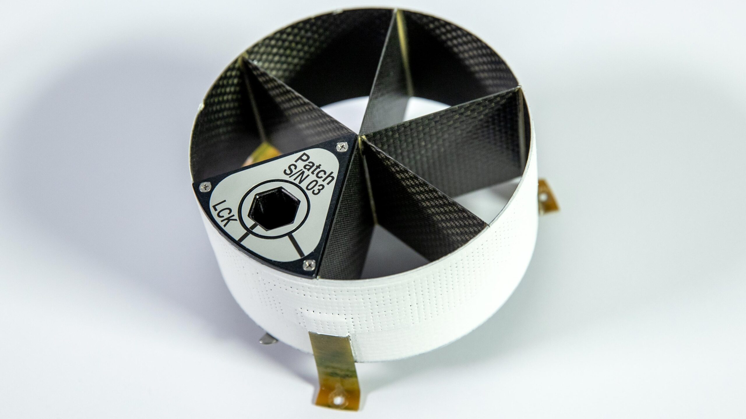 Патч NICER в сонцезахисному козирку. Внизу видно «язичок», який фіксує патч на місці. Фото: NASA/Sophia Robertsa