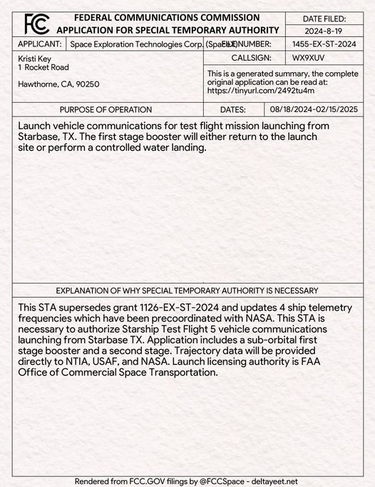 The FCC approved SpaceX to communicate with Starship during its next big test from Starbase, TX!