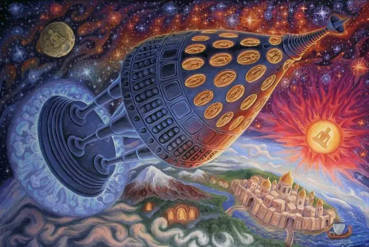 Супер! У митця прослідковується послідовна зміна сприйняття космосу: комуністична екзальтація на перших полотнах плавно перетікає у філософію індуїзму в наступних картинах і, нарешті, вибухає скандинавською міфологією в останньому художньому творі. Раґнарьок наближається!