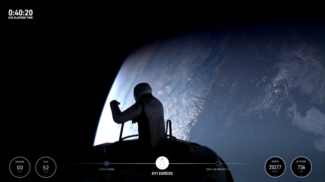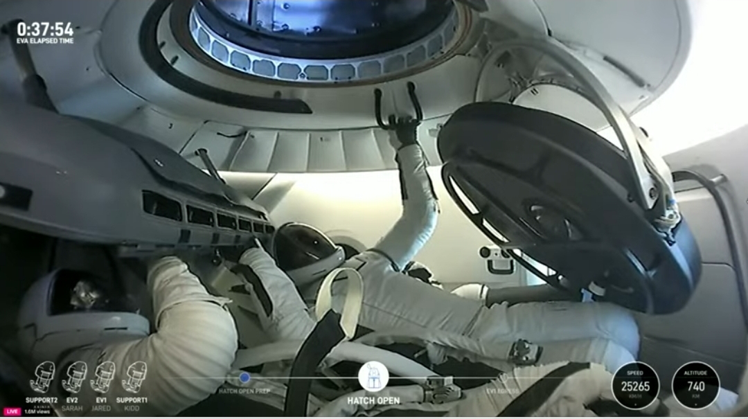 Джаред Айзекман та Сара Гілл визирнули з корабля Crew Dragon на декілька хвилин кожен.