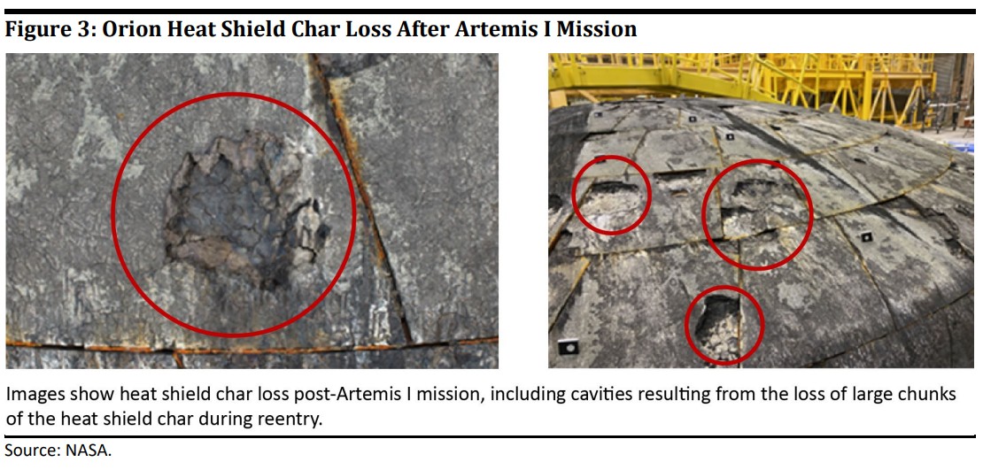Ця технічна проблема має велике значення для майбутньої місії «Артеміс II», першого за останні п’ять десятиліть повернення NASA в далекий космос з екіпажем, запланованого на вересень 2025 року. Під час неї Оріон доставить екіпаж з чотирьох осіб на орбіту навколо Місяця, цей політ триватиме приблизно десять діб. Хоча інженери підтвердили першопричину пошкодження теплового екрану «Оріона» в лабораторії реактивного руху NASA в Каліфорнії, зараз вони вирішують, чи є поточна конструкція екрану достатньо безпечною для наступної місії, чи необхідний капітальний перегляд корабля – вибір, який може затримати запуск «Артеміс II» на рік або й більше.