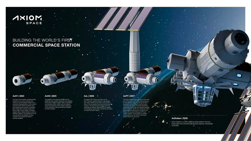 Компания представила максимально рациональный проект, который позволит избежать временного «разрыва» между завершением деятельности Международной космической станции и запуском новой орбитальной станции. Общий принцип – создание на МКС дополнительного автономного блока модулей Axiom Orbital Segment (минимум три модуля), который позднее можно отстыковать и отправить в самостоятельное «плавание» под названием Axiom Station. То есть осуществляется плавный эволюционный переход от МКС к Axiom Station – при необходимости можно даже переместить  часть научно-исследовательской  аппаратуры и иного оборудования на новую станцию.