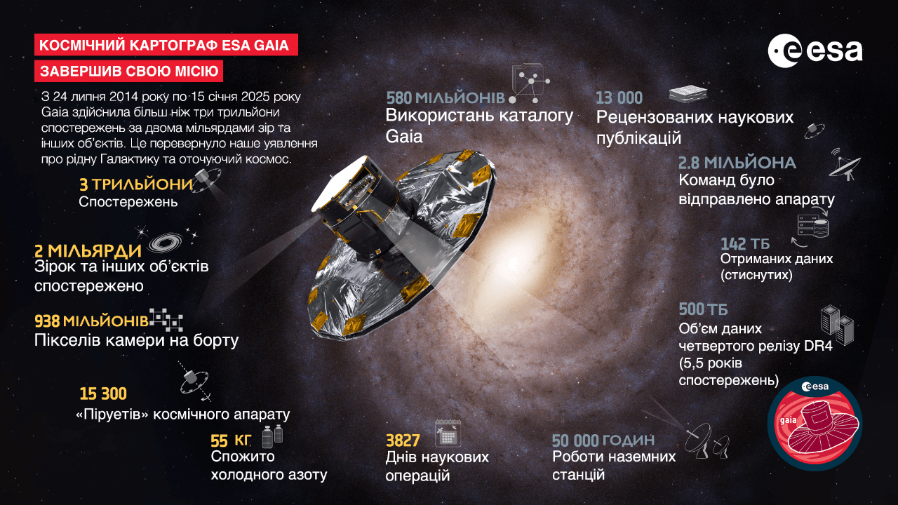Місія Європейського космічного агентства Gaia підходить до свого завершення. Однойменний космічний апарат, призначений для картографування Чумацького Шляху, зібрав понад три трильйони спостережень двох мільярдів зірок та інших обʼєктів.