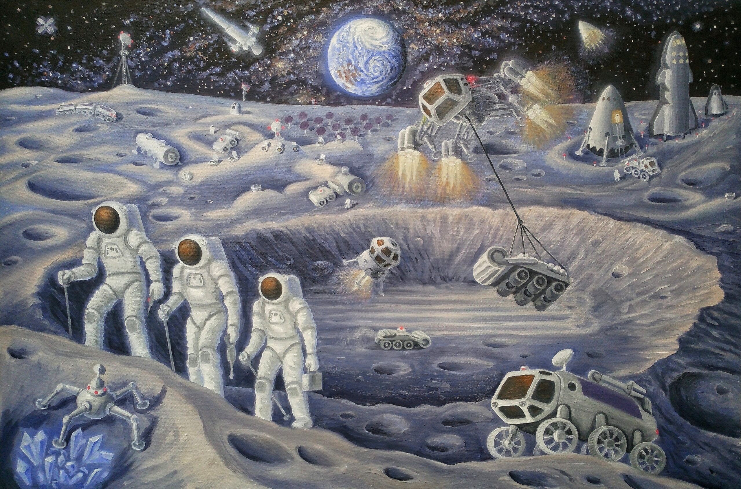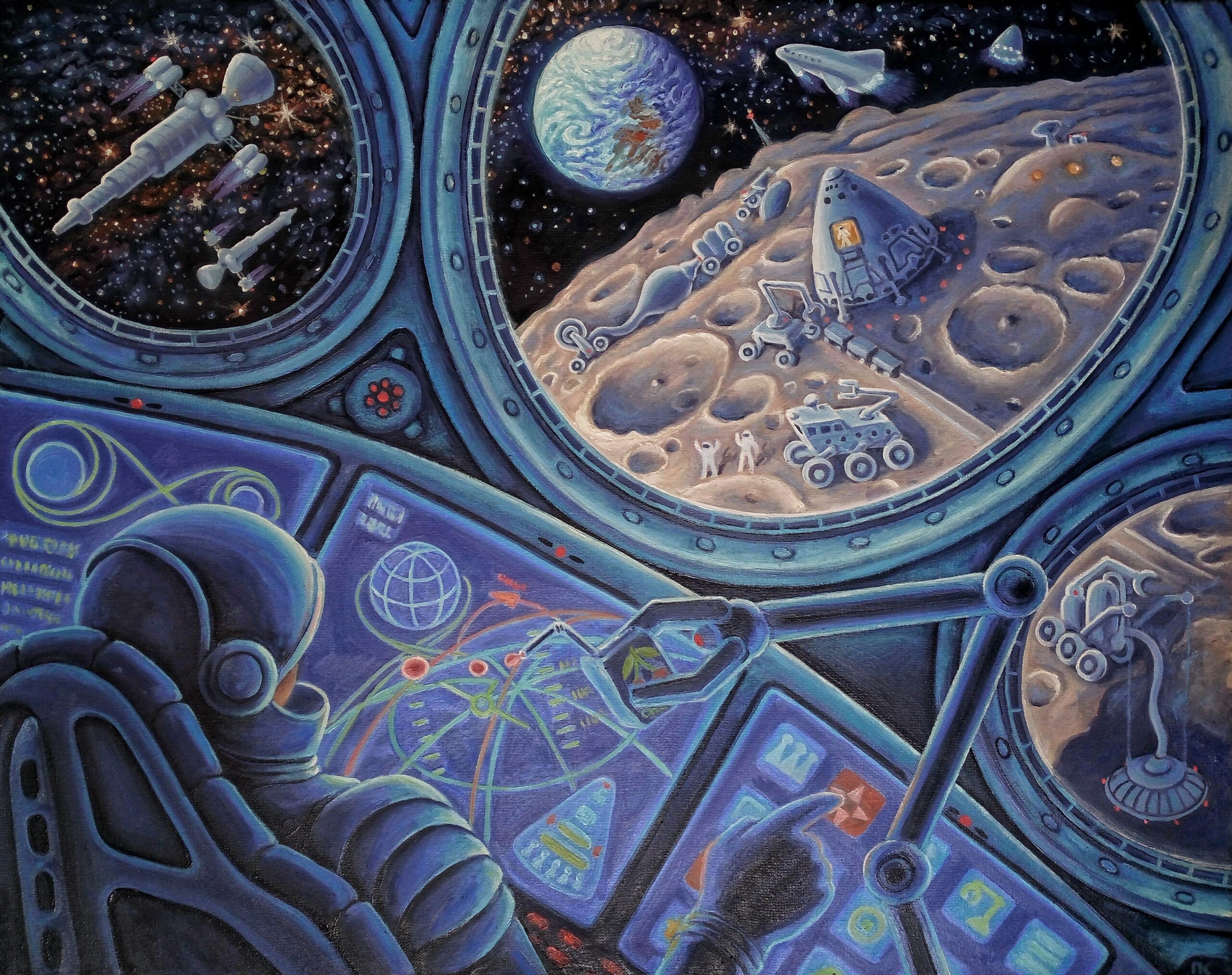 В мене відбулася значна подія – моя картина отримала третє місце в конкурсі NASA Moon to Mars Architecture Art Challenge, в сегменті Sustained Lunar Evolution. Я випадково дізнався про цей конкурс від одного з моїх підписників і так захопився, що намалював аж чотири картини. І одна з них досягла цілі. Ось вона: