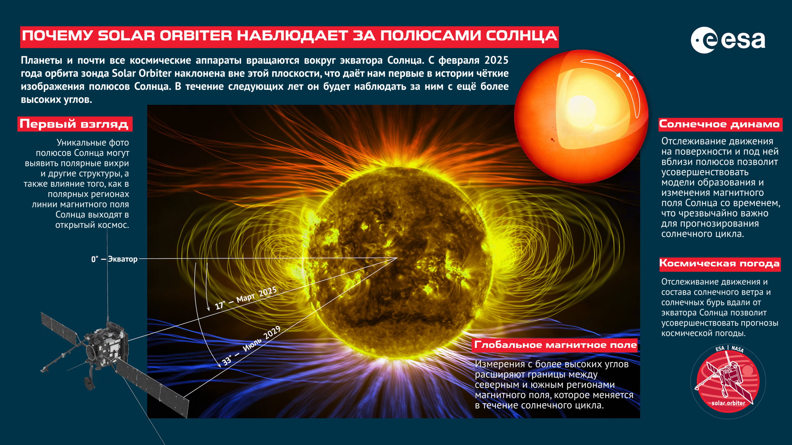 Усі отримані раніше зображення світила були зроблені з його екватора, оскільки планети та активні космічні апарати обертаються в цій площині, яку ще називають екліптикою. Нахиляючи свою орбіту поза неї, апарат дає змогу по-новому вивчати сонячне магнітне поле, цикл і космічну погоду.