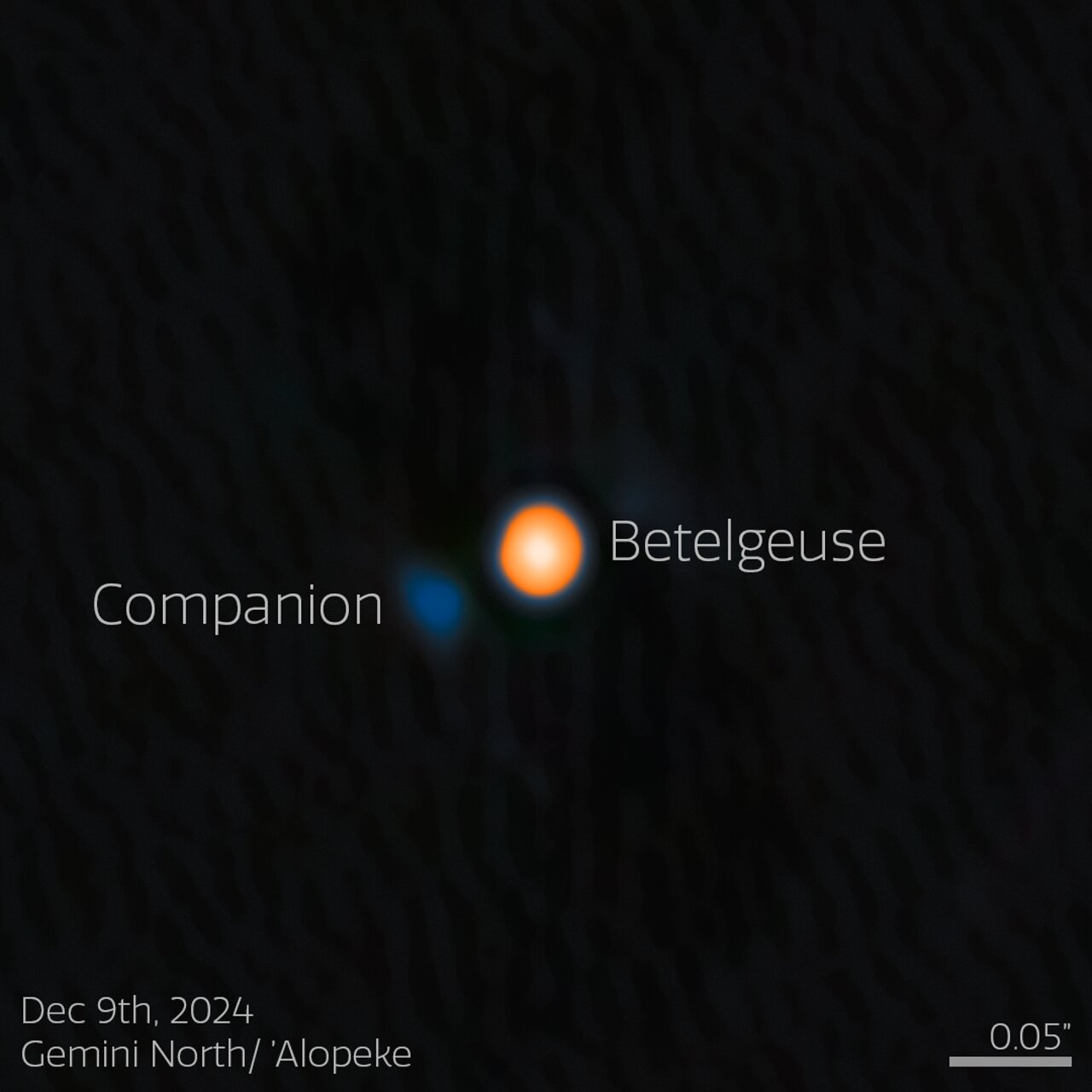 Спостереження були проведені за допомогою інструмента телескопа Alopeke, що використовує метод коротких експозицій для отримання високоякісних зображень попри турбулентність земної атмосфери. Виявлений компаньйон – це зоря A або B спектрального класу, біло-блакитного кольору, приблизно вшестеро тьмяніша за саму Бетельгейзе та має масу близько півтори сонячної. Особливість її орбіти полягає в тому, що вона пролягає на відстані приблизно 4 астрономічних одиниць – це менше, ніж відстань від Юпітера до Сонця, і буквально всередині розрідженої зовнішньої атмосфери надгіганта.