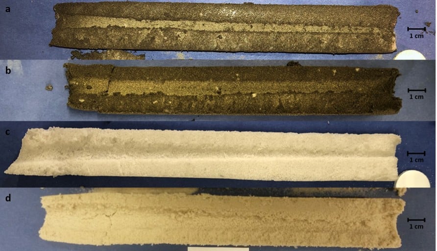 Изображение скважин, проделанных лазером в некоторых образцах. Credit: M. Koßagk et al