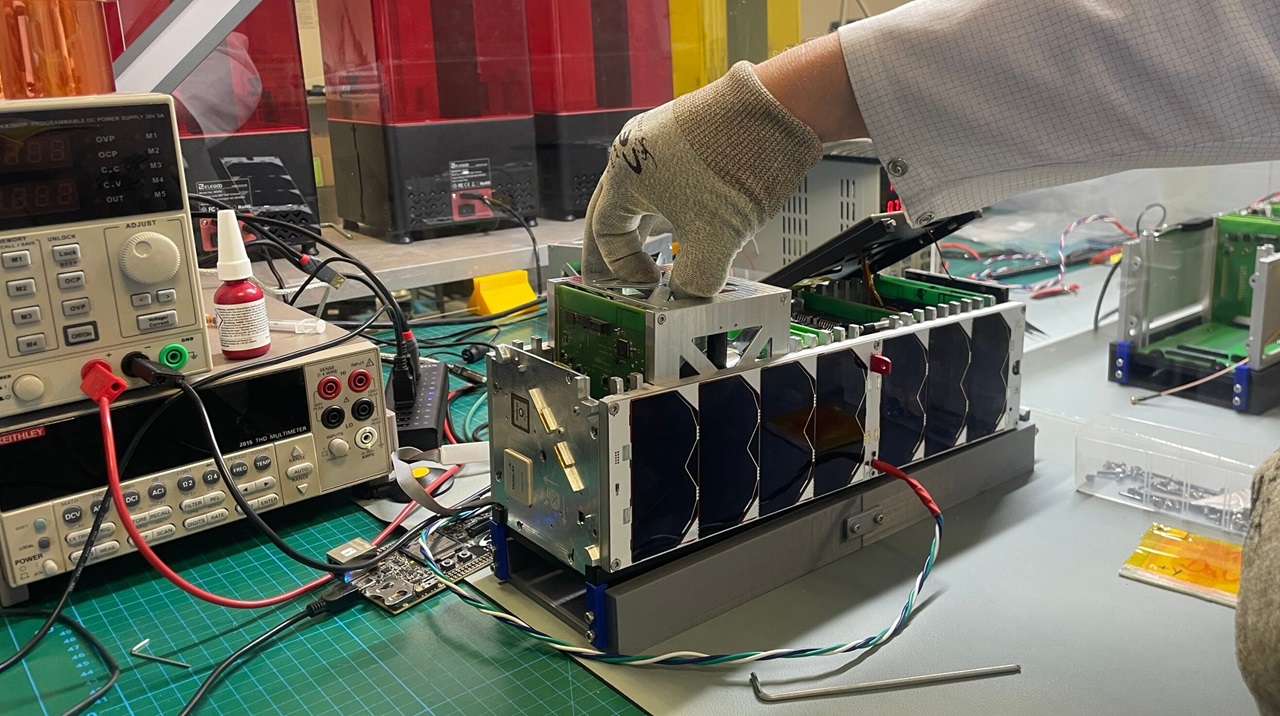 Встановлення блоку двигунів-маховиків у кубсат InnoCube. Фото: Tom Baumann | JMU Würzburg