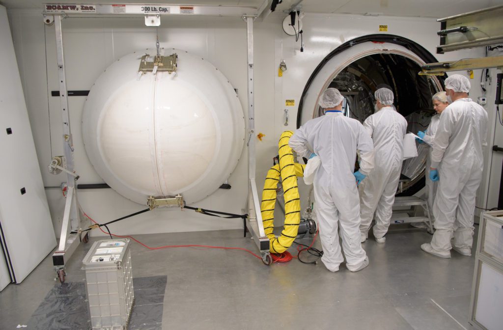 Вот так это выглядит. Слева – снятый носовой отсек обтекателя (Credit: NASA/Bill Ingalls)
