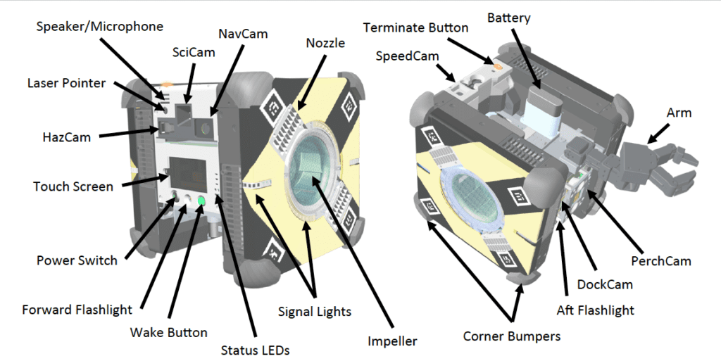 Астронавты получат ещё парочку летающих компаньонов. Кубик со сторонами длиной 32 см зовётся Astrobee и весит около 10 кг. Он передвигается с помощью системы вентиляторов и полагается на визуальную навигацию. У него даже есть небольшая “клешня” – Astrobee сможет хвататься за поручни на МКС, оставаясь возле них на долгие периоды времени и экономя энергию.