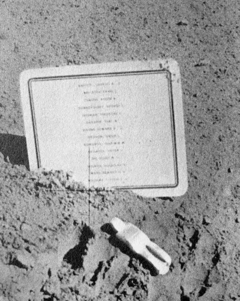*Табличку с 14-ю именами астронавтов и космонавтов Скотт сделал сам, дополнить лунную скульптуру таким элементом было его решением.