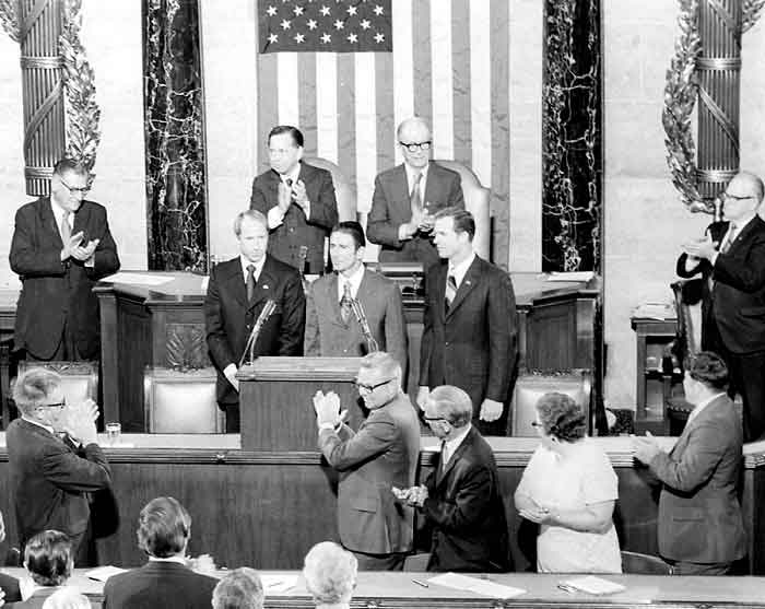 Фото: NASA/ Члены Конгресса приветствуют экипаж Аполлон-15, после его возвращения с Луны, 1971 год