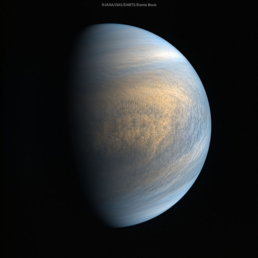 Фотография Венеры в оптическом и ультрафиолетовом диапазонах, полученная камерами зонда «Акацуки». Фото: JAXA/ISAS/DARTS/Damia Bouic